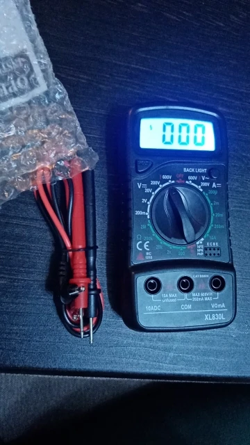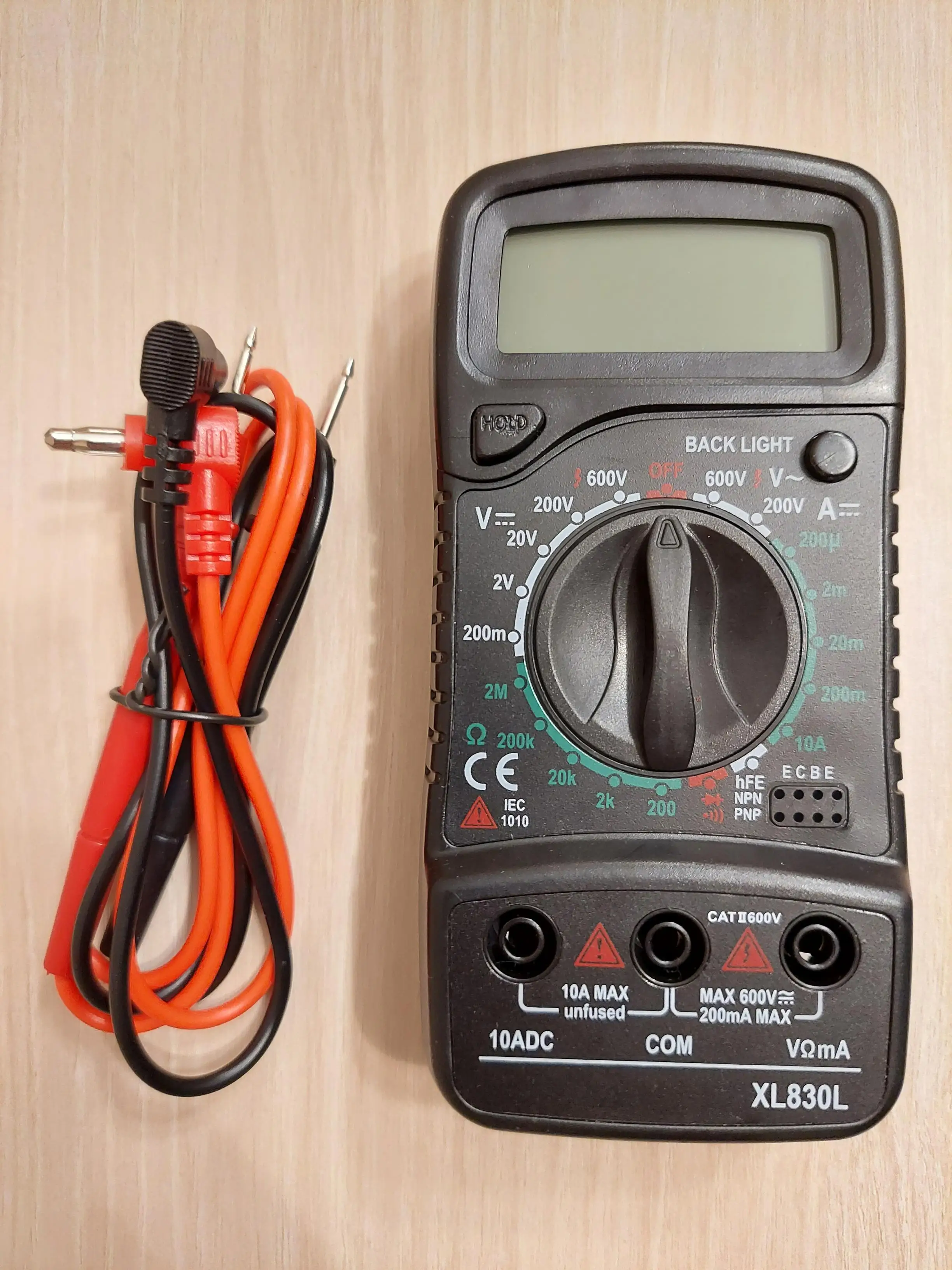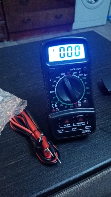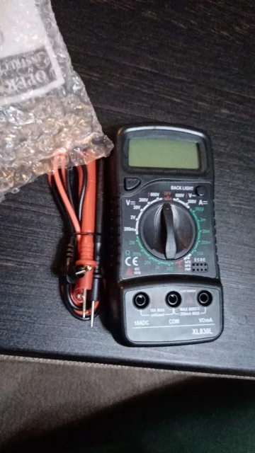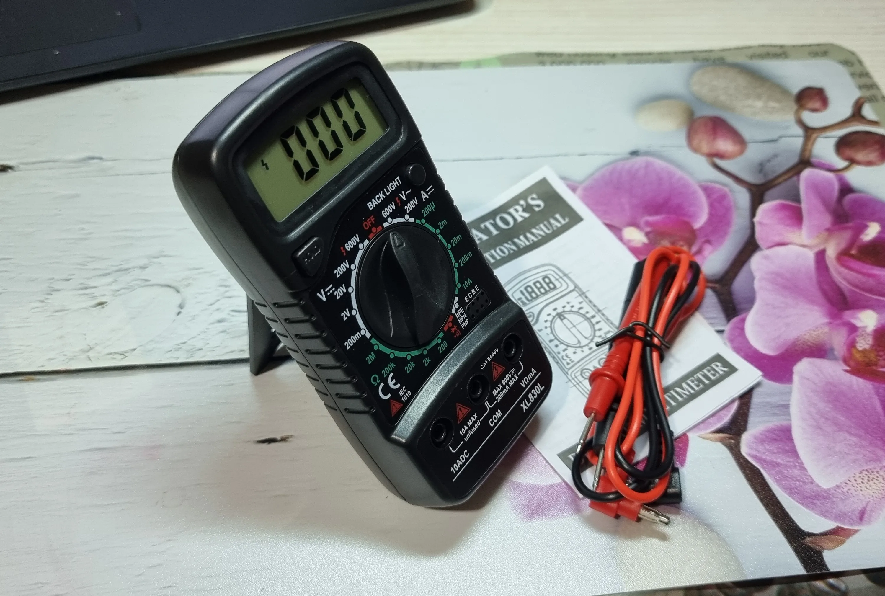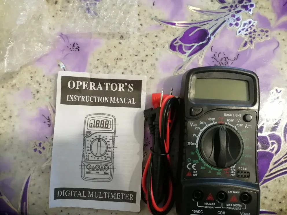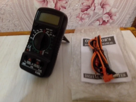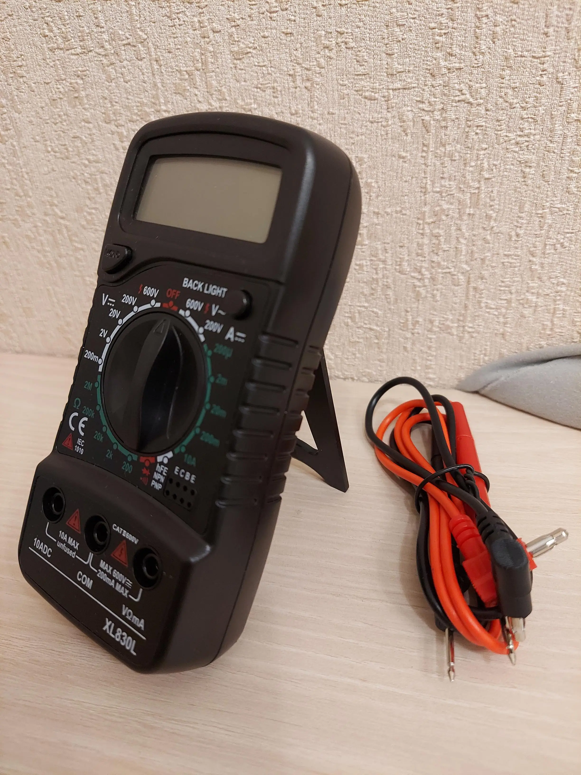 Обычный мультиметр из дешёвого ценового сегмента. Батарейка типа "крона" в комплект не входит. Упаковано в пупырку. Пришёл без повреждений. Провода щупов жёсткие. Имеется встроенная подставка. Синяя, яркая подсветка, работает не постоянно, после нажатия плавно затухает. Имеется кнопка "HOLD". Набор измерений стандартный. Обновление показаний немного заторможено. Для бытового применения в самый раз.