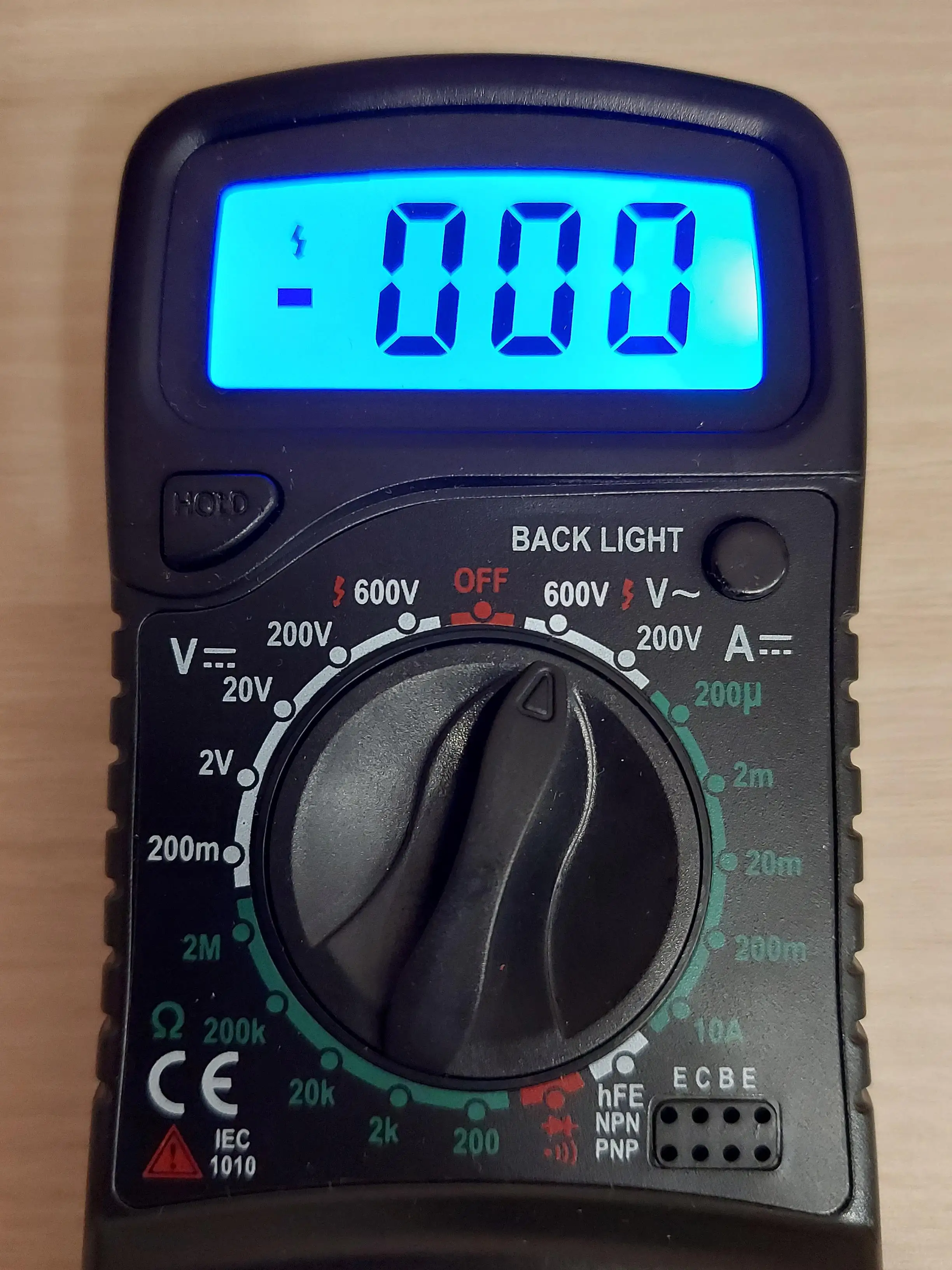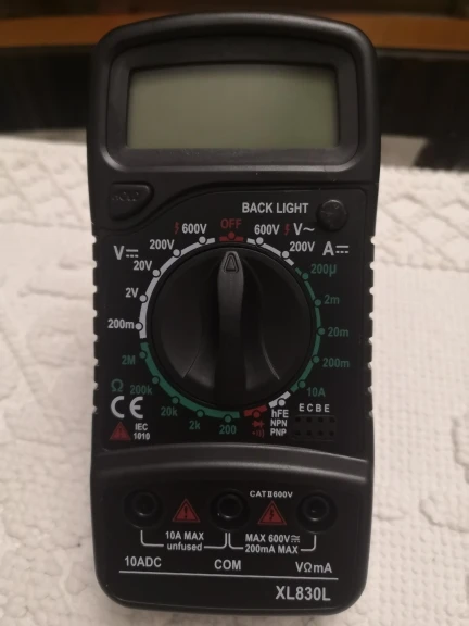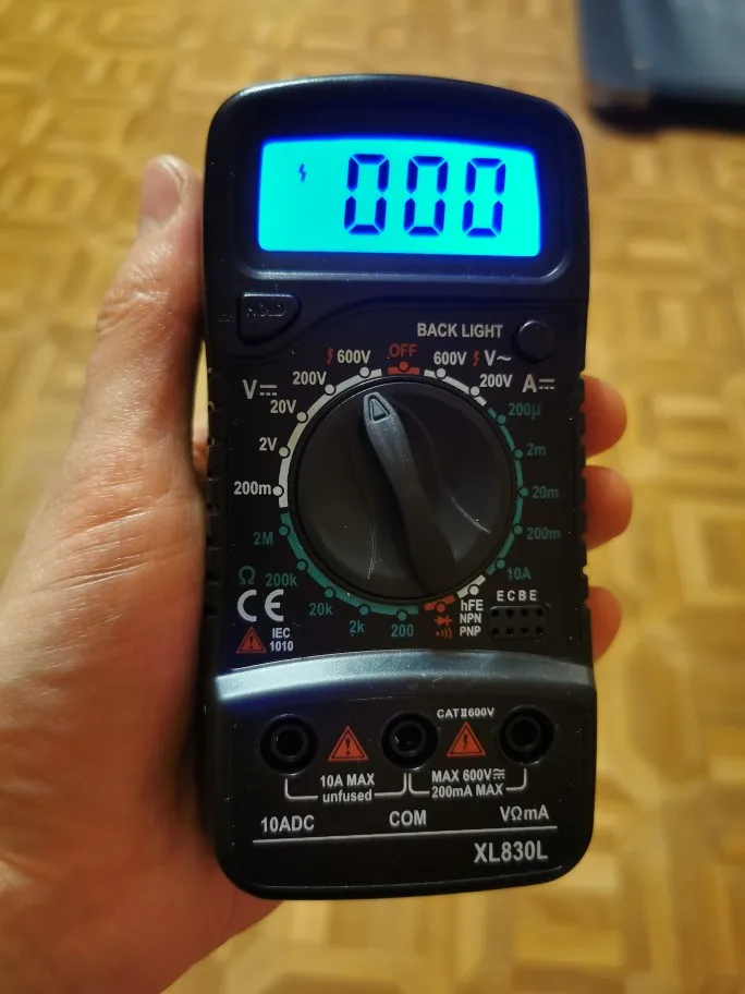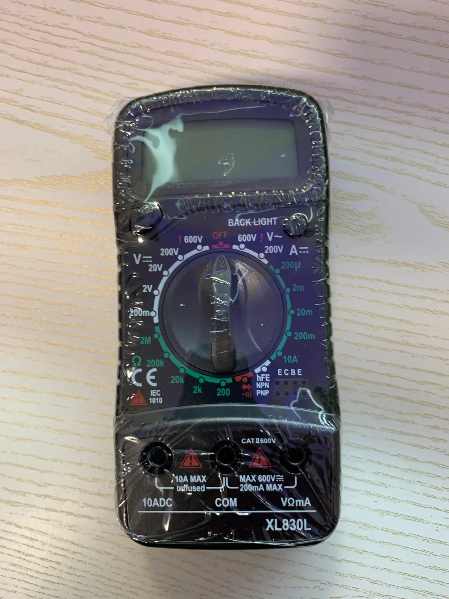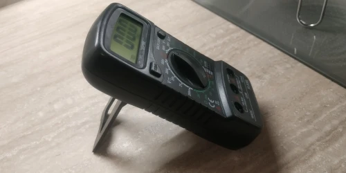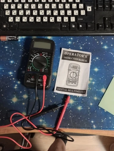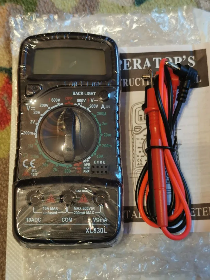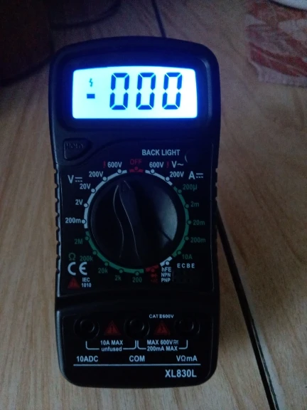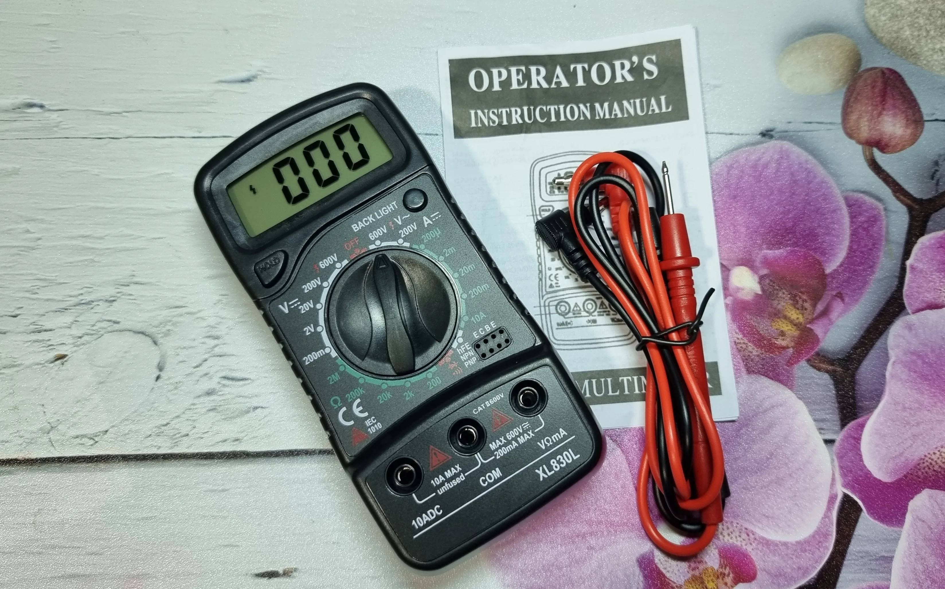 Обычный мультиметр из дешёвого ценового сегмента. Батарейка типа "крона" в комплект не входит. Упаковано в пупырку. Пришёл без повреждений. Провода щупов жёсткие. Имеется встроенная подставка. Синяя, яркая подсветка, работает не постоянно, после нажатия плавно затухает. Имеется кнопка "HOLD". Набор измерений стандартный. Обновление показаний немного заторможено. Для бытового применения в самый раз.