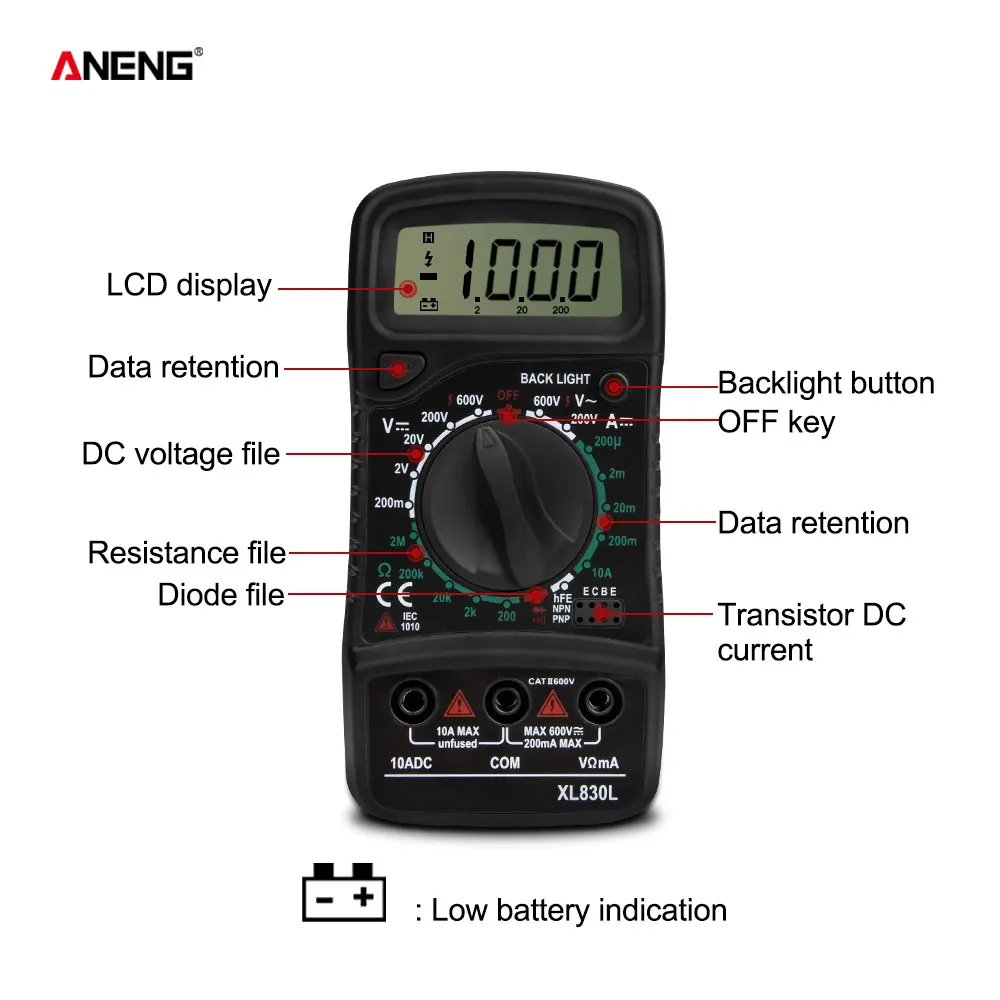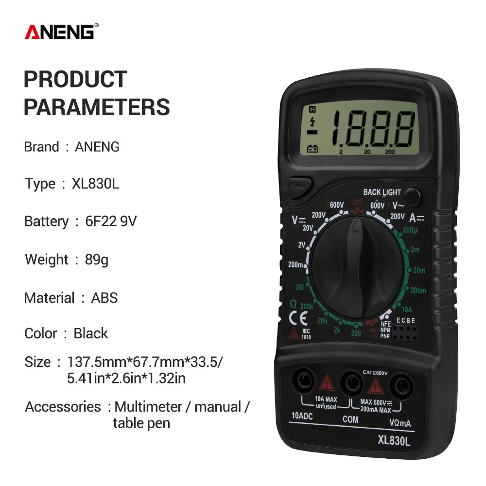 ANENG XL830L мультиметр цифровой тестер мультиметр digital multimeter Мультиметр мультиметры мини tester тестор мультитестер тестеры тестер конденсаторов esr meter щупы для мультиметра мультиметор мультимер