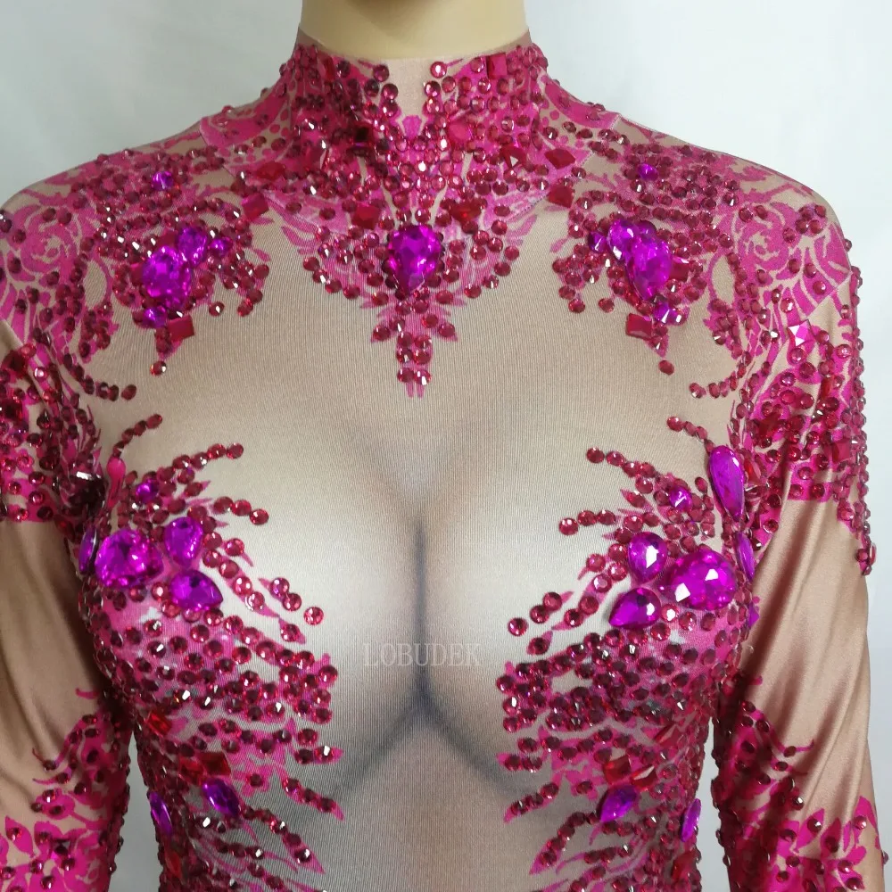 Женское трико для ночного клуба, красные стразы, стрейчевый комбине...