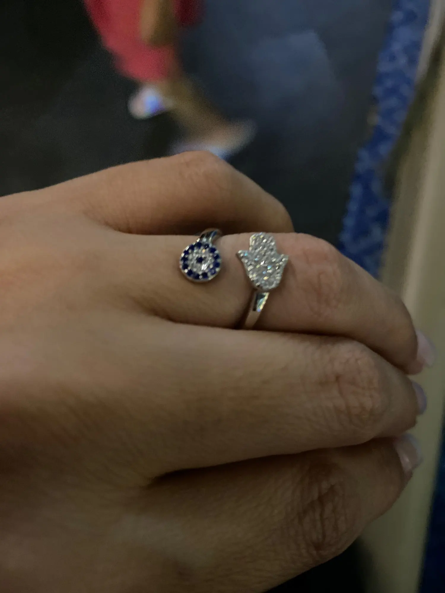 KALETINE 925 пробы Серебряный глаз синий глаз Хамса рука, Фатима руки регулируемые женские кольца открытый размер кольцо Свадебные ювелирные изделия
