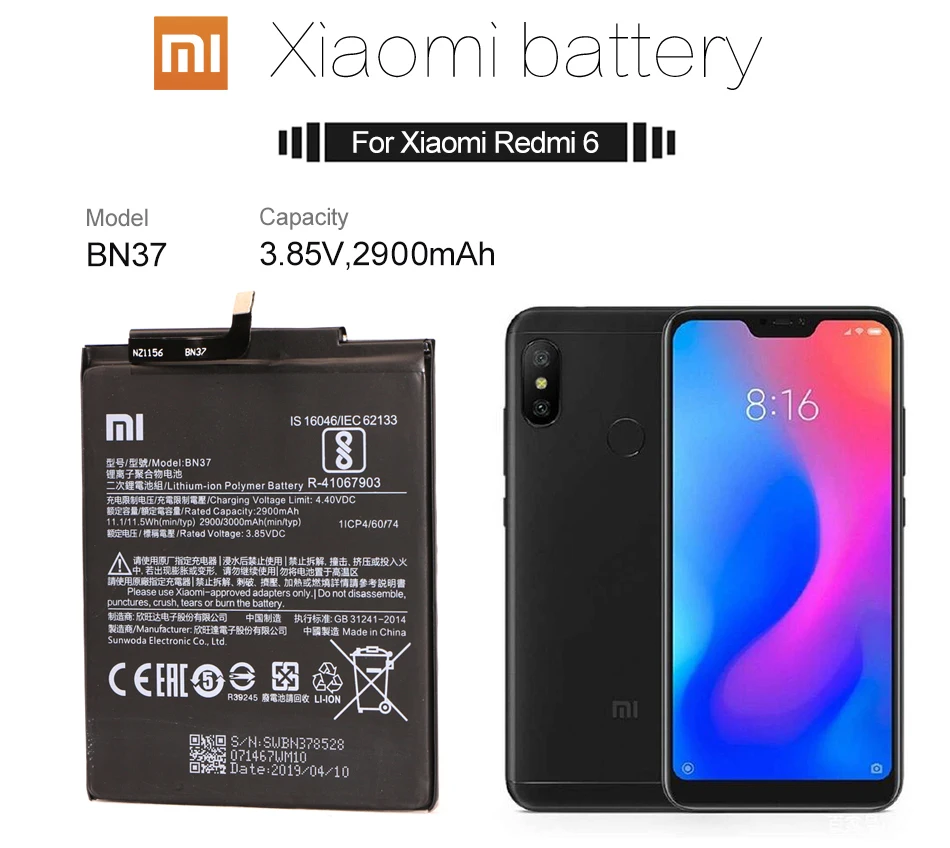 Support ModelsforXiaomi Redmi 6 Hongmi 6A battery