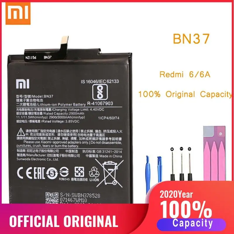 Оригинальный аккумулятор для телефона Redmi 6, сменные батареи Xiaomi hongmi 6A BN37, батарея Xiomi hongmi Redmi6