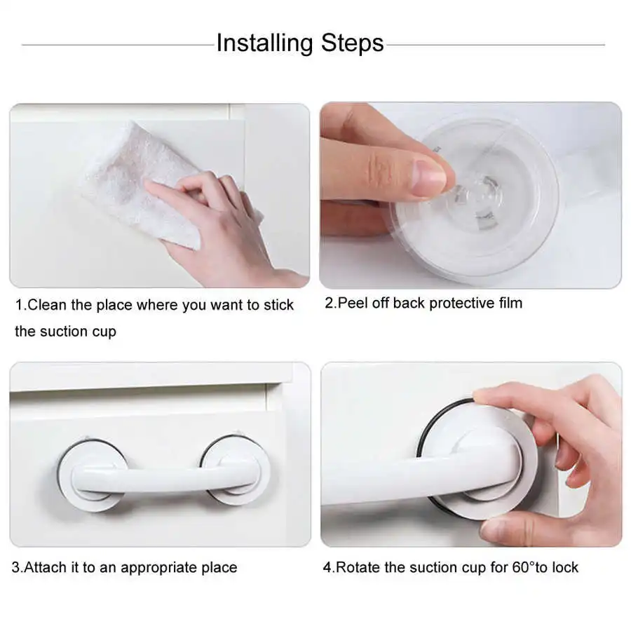 Описание: Каждая из наших Противоскользящих ручек для ванной комнаты добавляет супер сильную хватающую силу и дополнительную физическую безопасность, чтобы место, где могут произойти падения, например, ванна или ступени без перил. С ним малыши и старые могут войти в влажную и скользкую ванну более безопасно. Особенности: