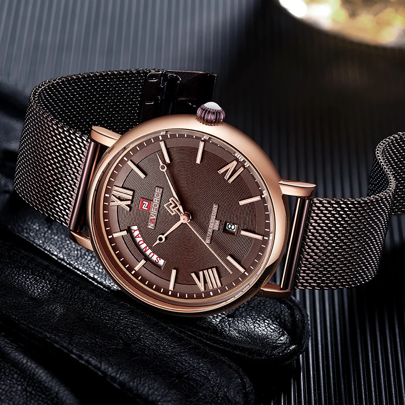 Часы NAVIFORCE мужские деловые, модные повседневные водонепроницаемые кварцевые наручные, с сетчатым браслетом из нержавеющей стали