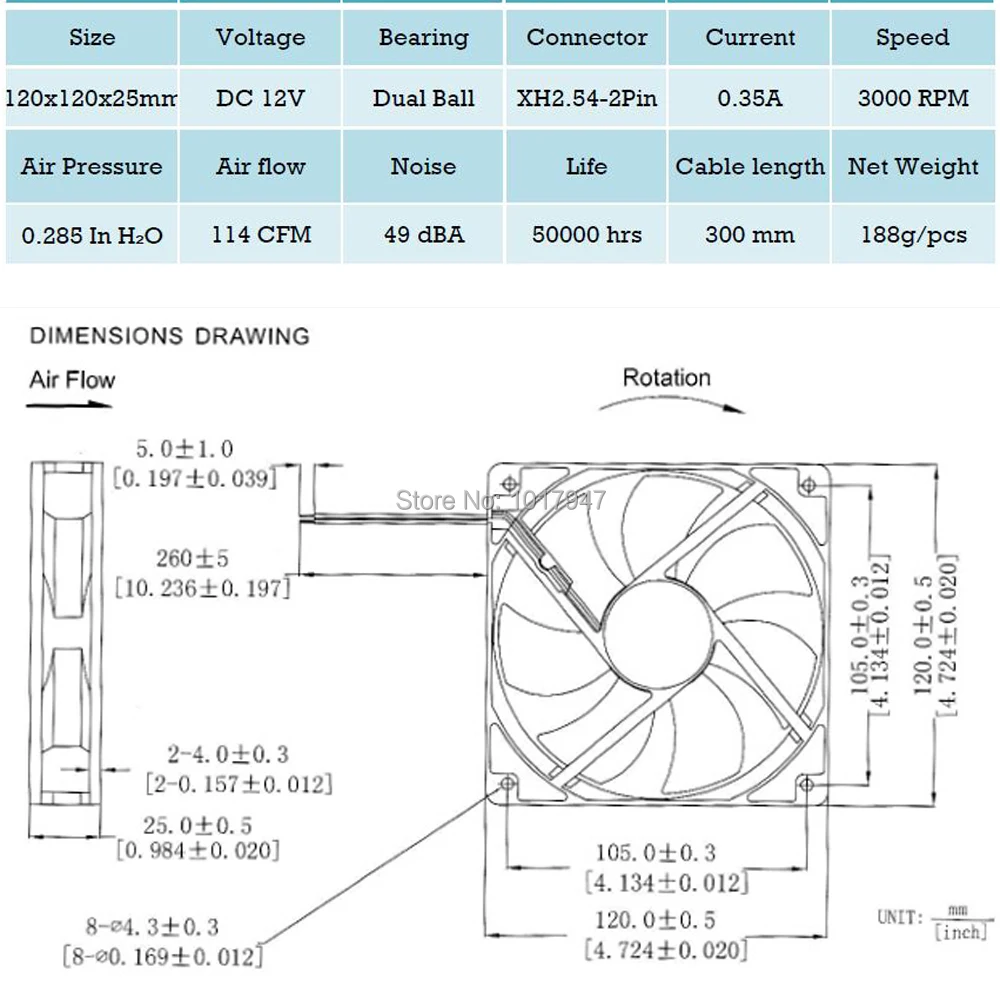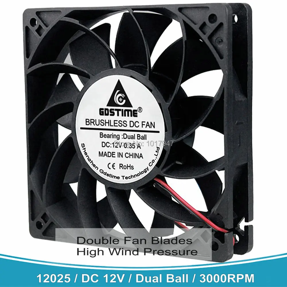 Gdstime высокое давление ветра 120 мм 12025 DC 12V 2Pin двойной шариковый подшипник 120x120x25 мм 12 см охлаждающий вентилятор