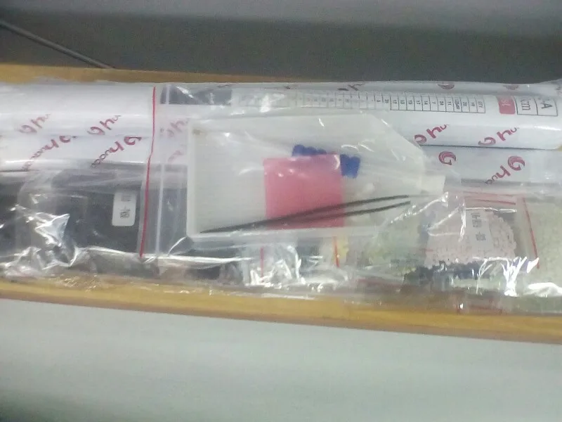 Инструменты включают в себя: алмазную пластину, клей, пинцет, ручки (наклеить 10 бриллиантов одновременно)
