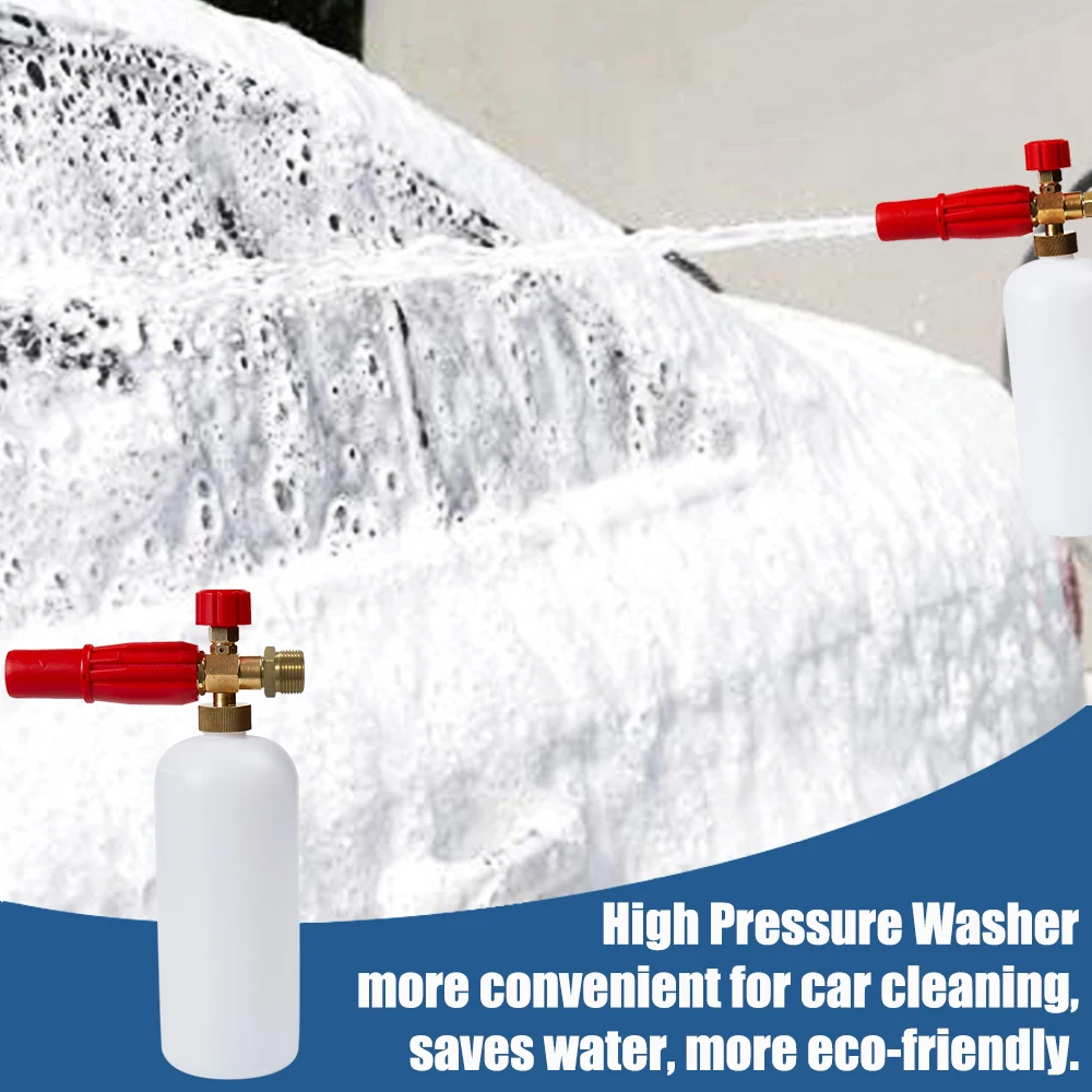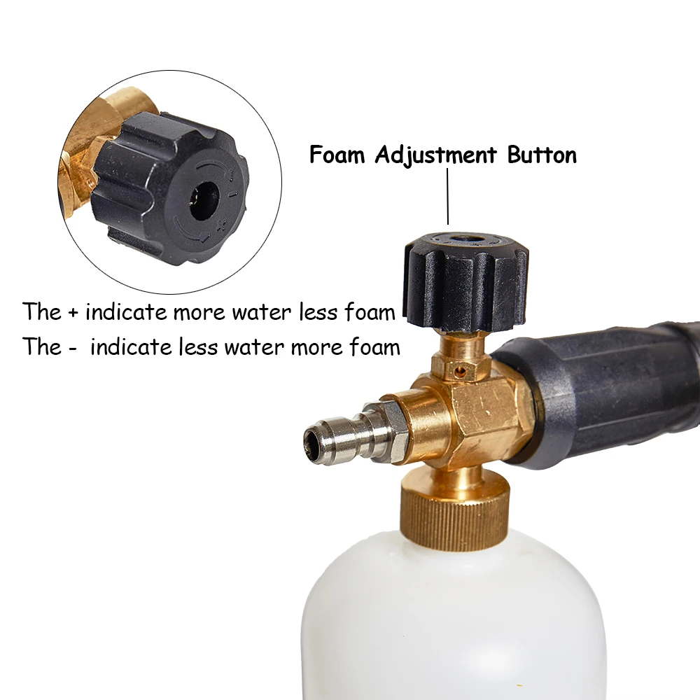 Характеристики:• Диапазон давления: 2000 - 5000 psi• Гарантия: 1 год (за исключением сетчатого фильтра внутри)• Емкость бутылки: 1000 мл (1 л)• Материал конструкции: твердая латунь, устойчивый нейлон, HDPE бутылка• Максимальная температура воды: 60 °C (140 °F)• Химическая стойкость: Да• Расход пены регулируется: Да• Регулируемая ширина распыления: ДаПримечание:100% послепродажное обслуживание гарантировано навсегда.Посылка включает:1 пенная насадка для снегаКак использовать:1. Поместите PTFE ленту на латунную трубку (две нити). Каждая нить требует 50 см PTFE ленты.2. Поместите адаптер с латунной трубкой и всасывающей трубкой на пенопластовое устройство.3. Заполните бутылку жидкости с нужным количеством шампуня.4. Заполните бутылку с водой (для достижения наилучших результатов рекомендуется использовать теплую воду, 20% шампуня + 80% воды).5. Встряхните бутылку жидкости, чтобы тщательно смешать шампунь с водой.6. Прикрепите бутылку жидкости к пенопластовому блоку.