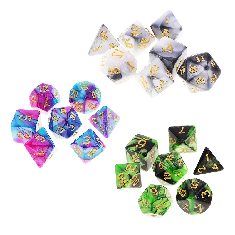 Многогранные кубики для подземелья и драконов, 7 шт., набор разноцветных кубиков и чашек для игры D20, D12, D10, D8, D6, D4