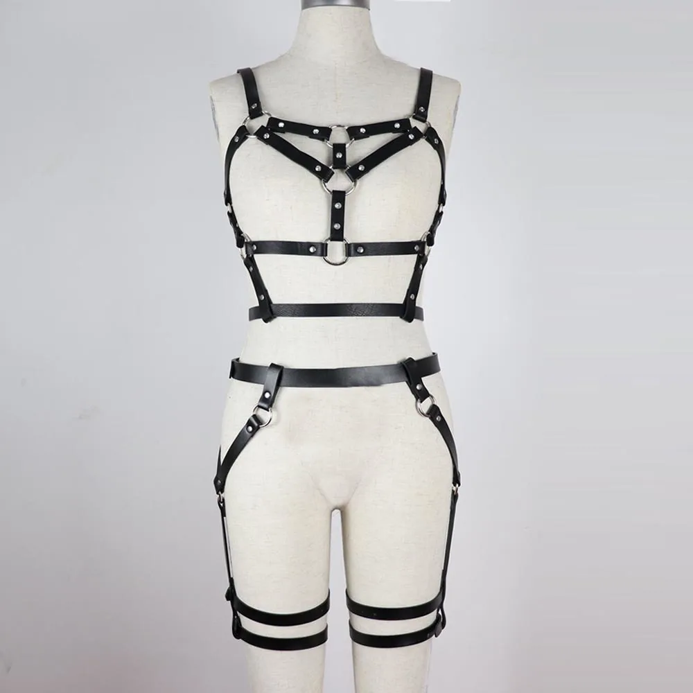 Женские кожаные ремни, 2 шт.компл., сексуальные, подвязка в готичес...