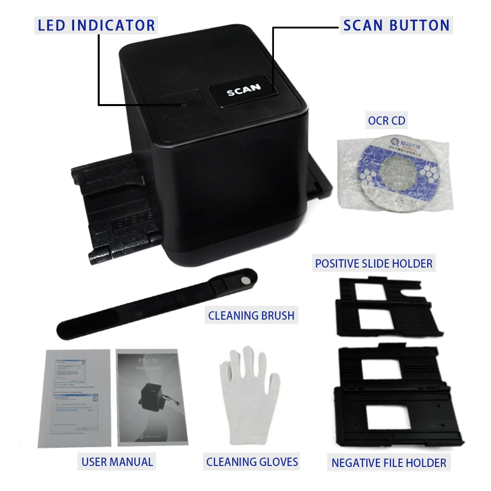 Сканер портативный для фотопленки, конвертер слайдов, пленки 35 мм, 135 мм, встроенное программное обеспечение для редактирования, USB-кабель