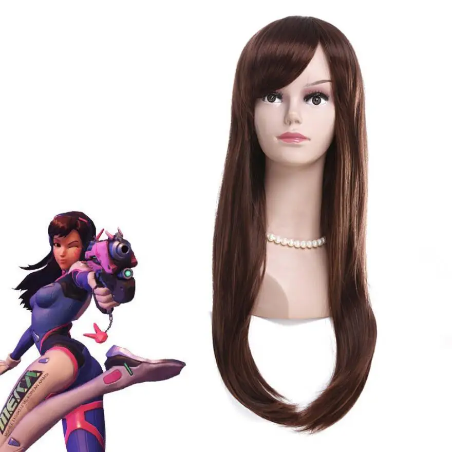 OW DVA D. Парик для косплея Хана два Сонг, Длинные женские парики для костюма VA Copslay коричневого цвета, 65 см