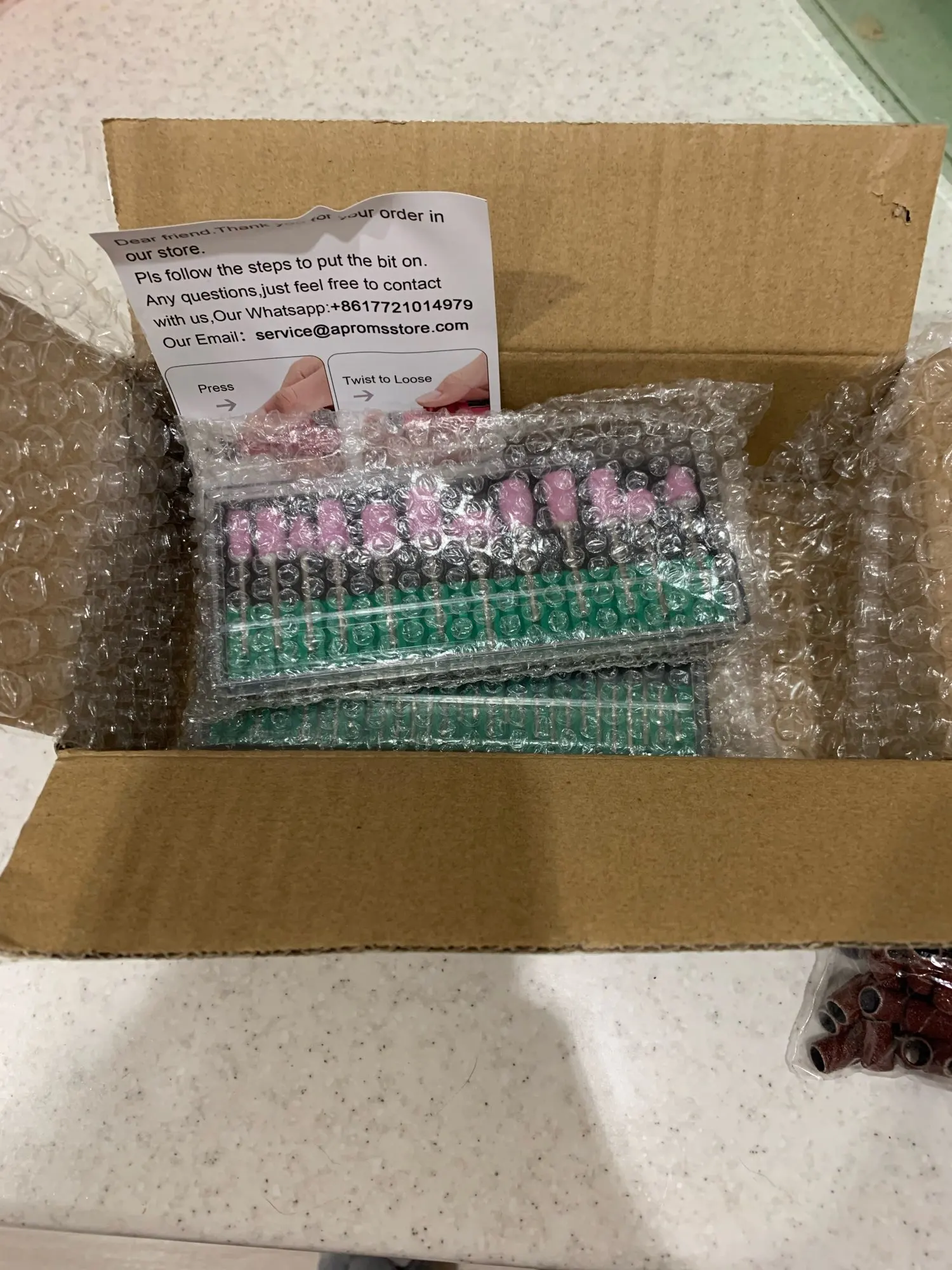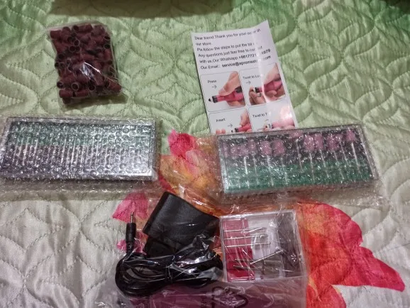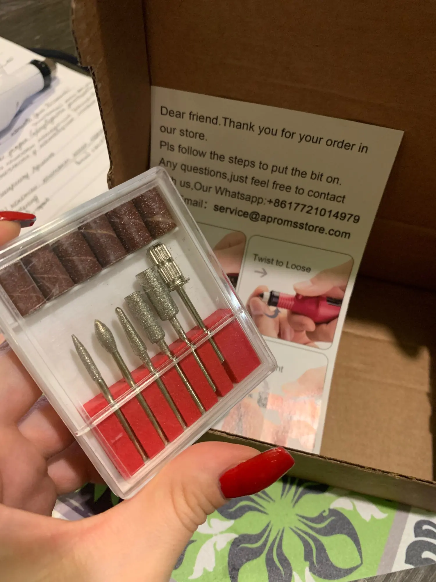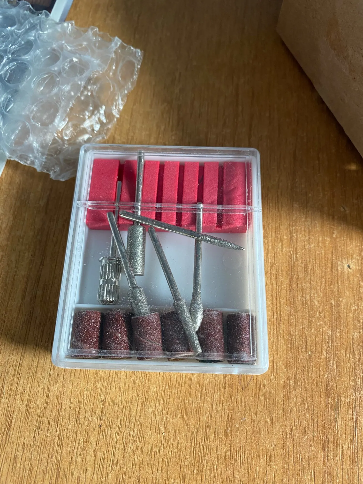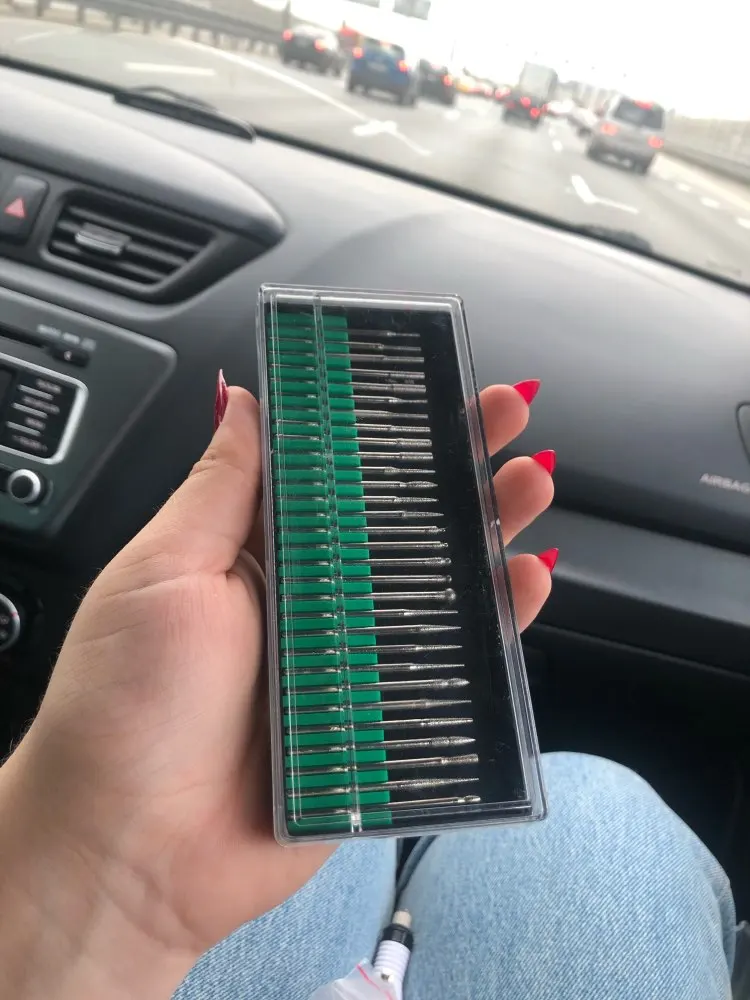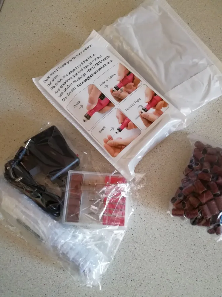 Заказывала с доставкой из России. Оперативная доставка. Курьер привез даже на день раньше обозначенного срока доставки. Сверла в комплекте, конечно, неахти, но у меня остались от сломавшейся машинки, да и можно отдельно заказать. По кутикуле эти справляются.