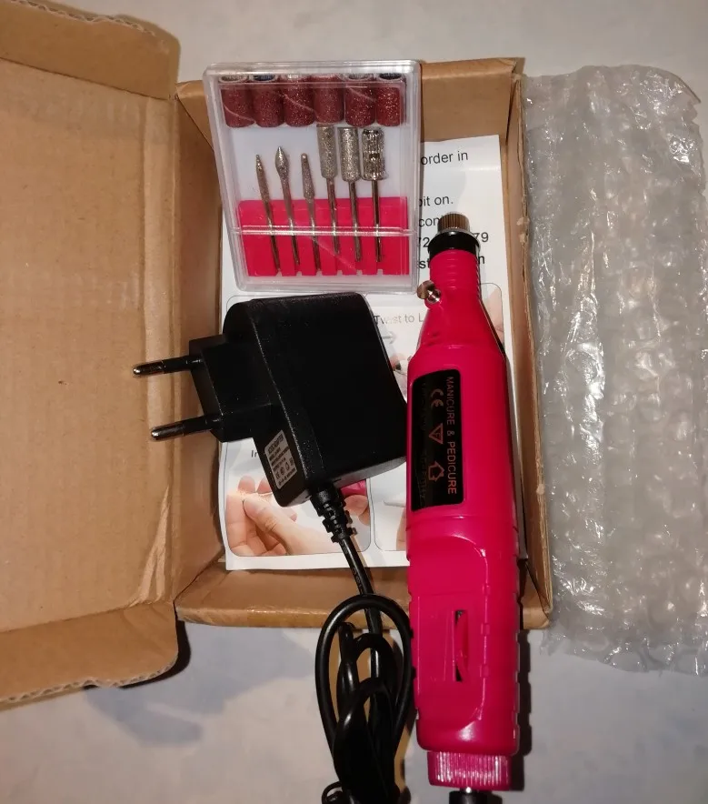 Идеальная вещь для домашнего пользования! Когда заказывала, очень сильно переживала, что это будет что-то похожее на игрушечную машинку для маникюра, но когда она пришла, я была очень приятно удивлена. Что касается насадок, то лучше приобрести свои. А так в целом, я очень довольна, за такую цену вообще класс!