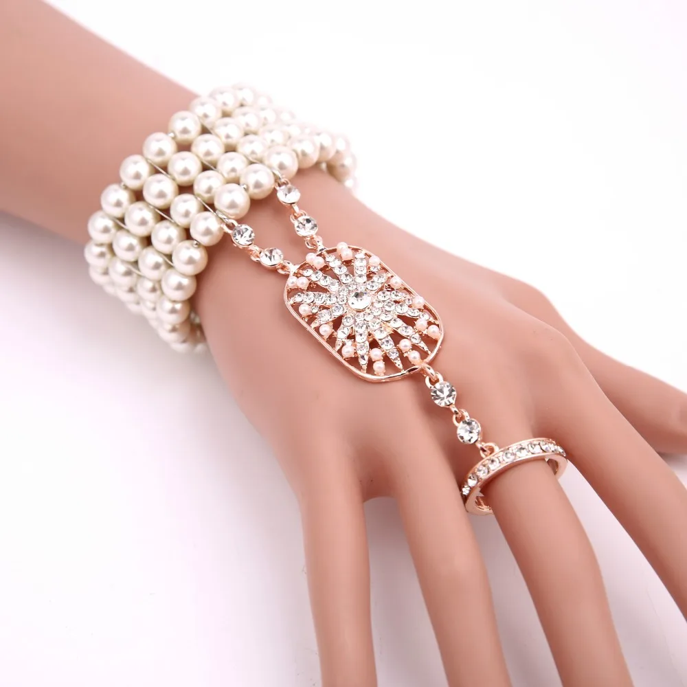 Набор аксессуаров для костюма Великий Гэтсби, 20s, повязка на голову в стиле арт-деко, жемчужный браслет, кольцо, ручные аксессуары, набор из 2 предметов, 1920s