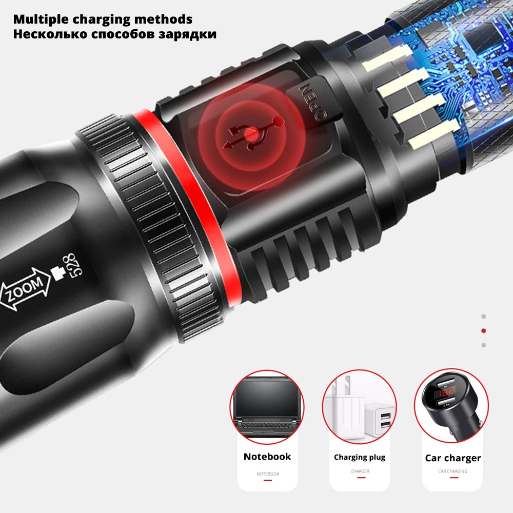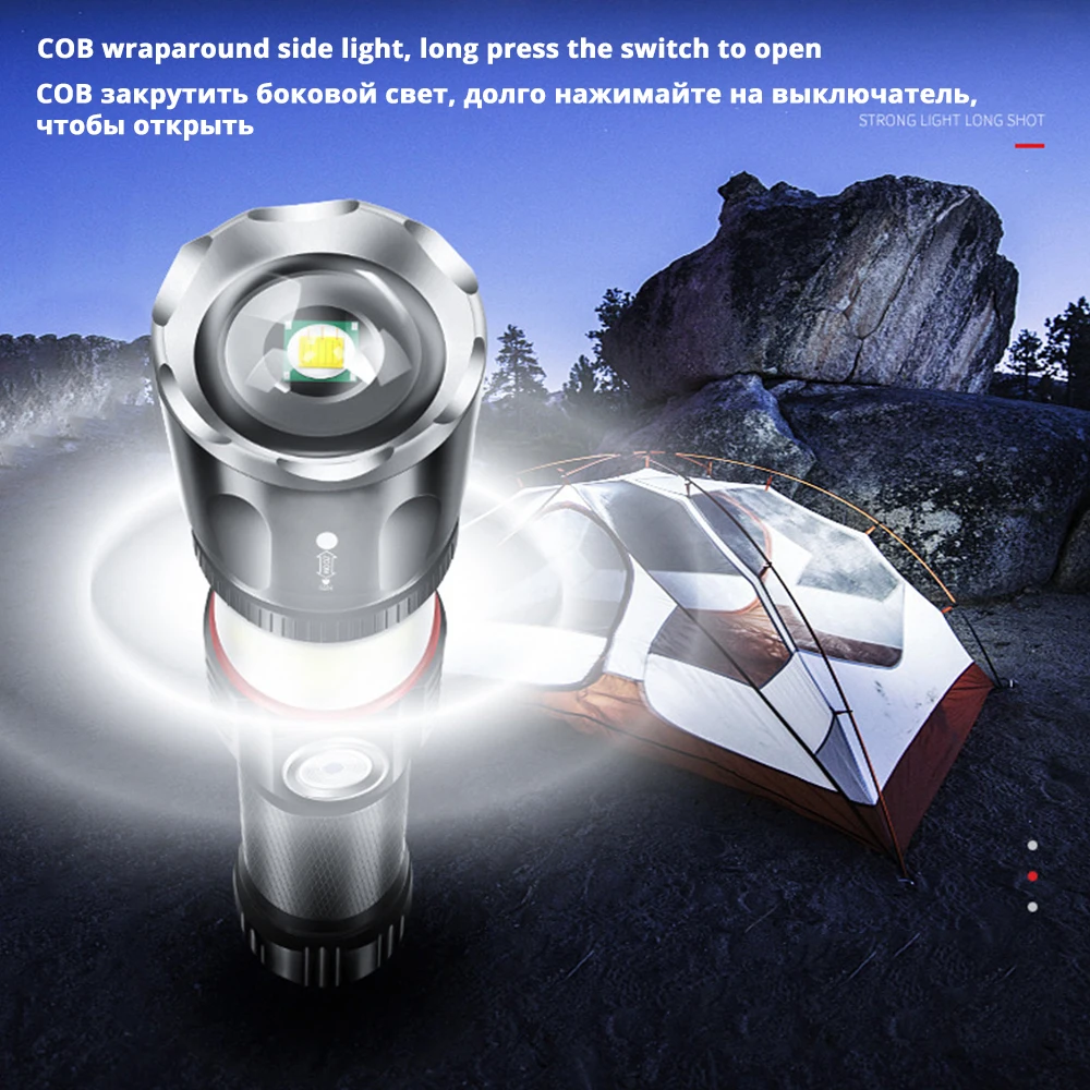 Перезаряжаемый светодиодный фонарик с окружающей лампой COB и задним магнитом, 4 режима освещения, водонепроницаемый фонарь для кемпинга