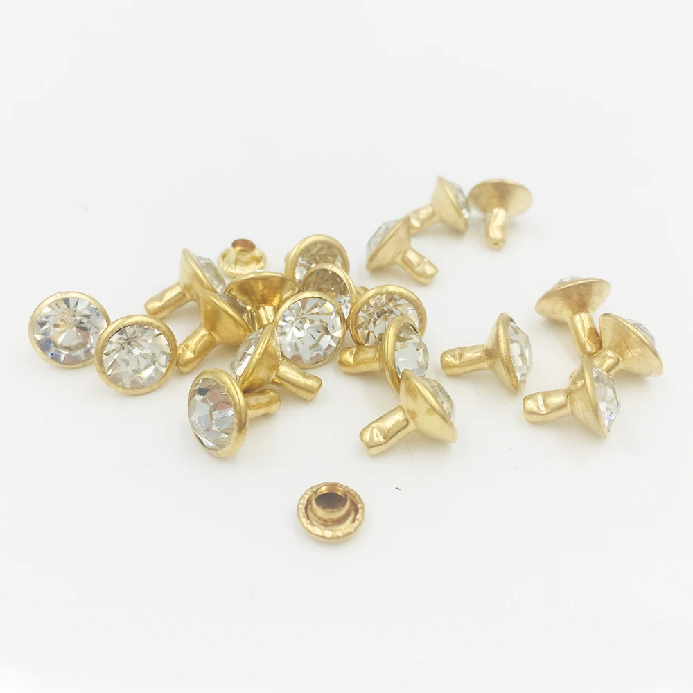 100 комплектов 6 мм и 8 мм прозрачные хрустальные заклепки из горного хрусталя золотые металлические базовые шпильки для одежды сумка для кожевенного ремесла заклепки
