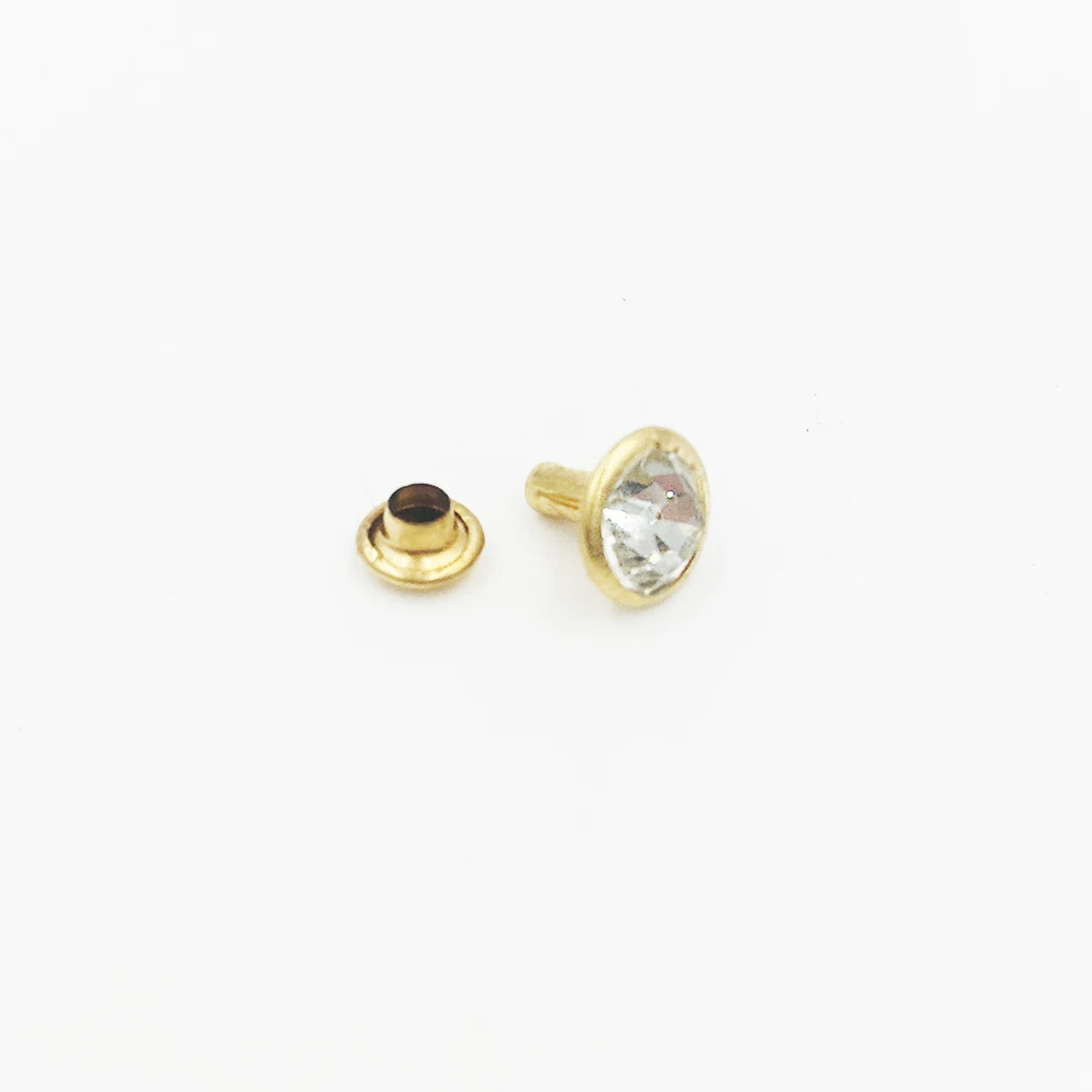 Заклепки из горного хрусталя с прозрачными кристаллами 6 мм и 8 мм, золотистые металлические шпильки, заклепки для одежды, сумок, кожевенного ремесла, заклепки, 100 комплектов