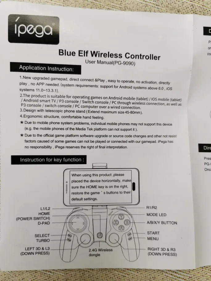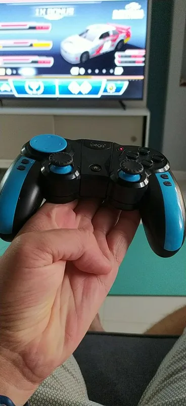 Очень быстрая доставка, за 4 дня курьером. Хороший геймпад, брал в пару, второй ноу нейм но тоже определяется как ipega, оба определились в эмуляторе epxe для mi box, в настройках управления нужно выбрать второй геймпад, подключил через донгл. Играть вдвоём на приставке интереснее. Отключать долгим зажатием кнопки хоум или сам через 5 минут отключится.