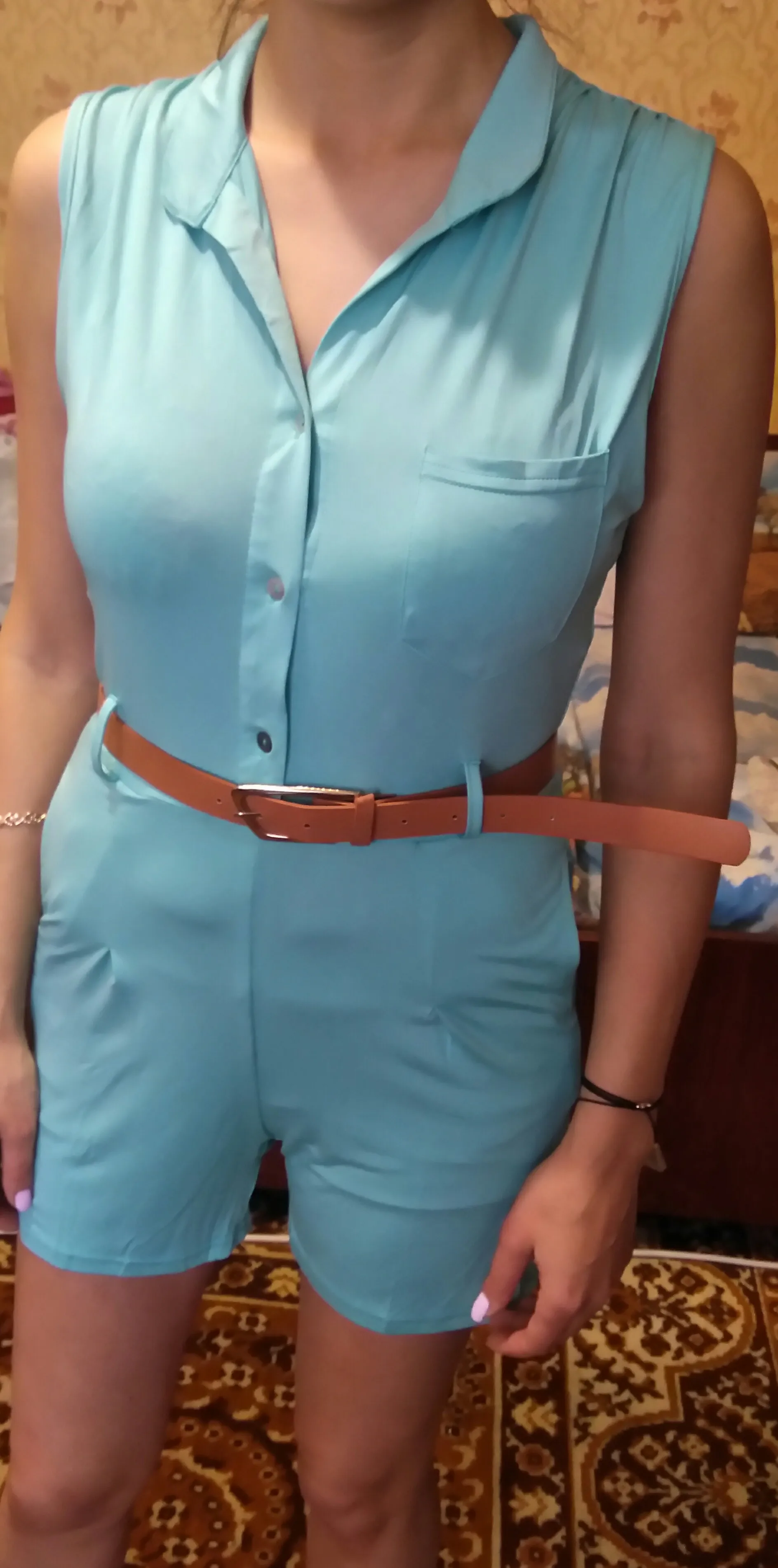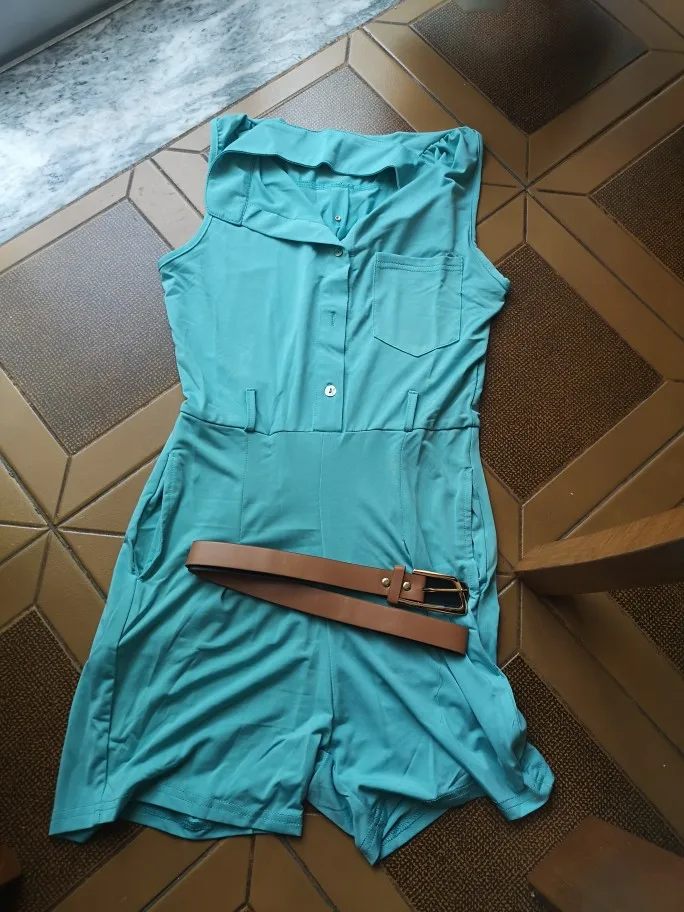 Женский комбинезон с открытыми плечами, с пуговицами и поясом