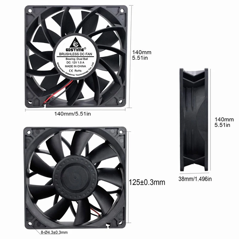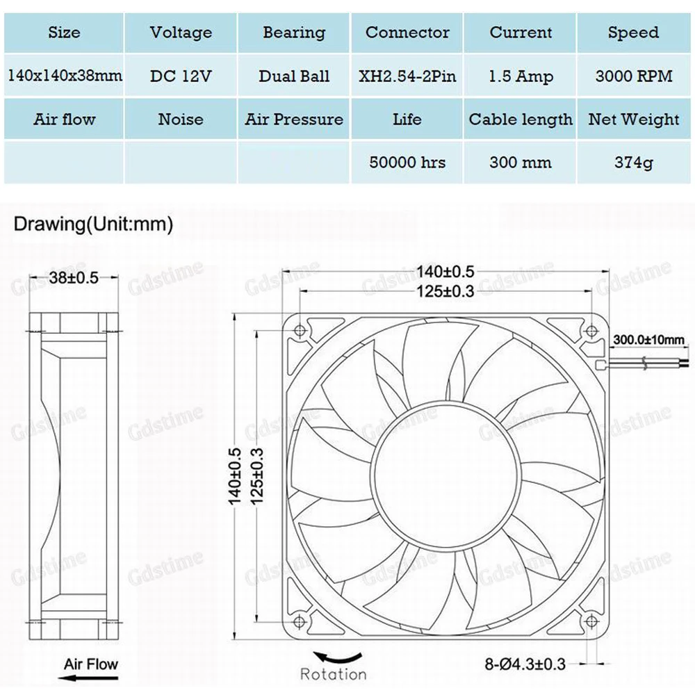 Gdstime 14038 140 мм 12 В постоянного тока 2Pin 14 см 140x140x38 мм...
