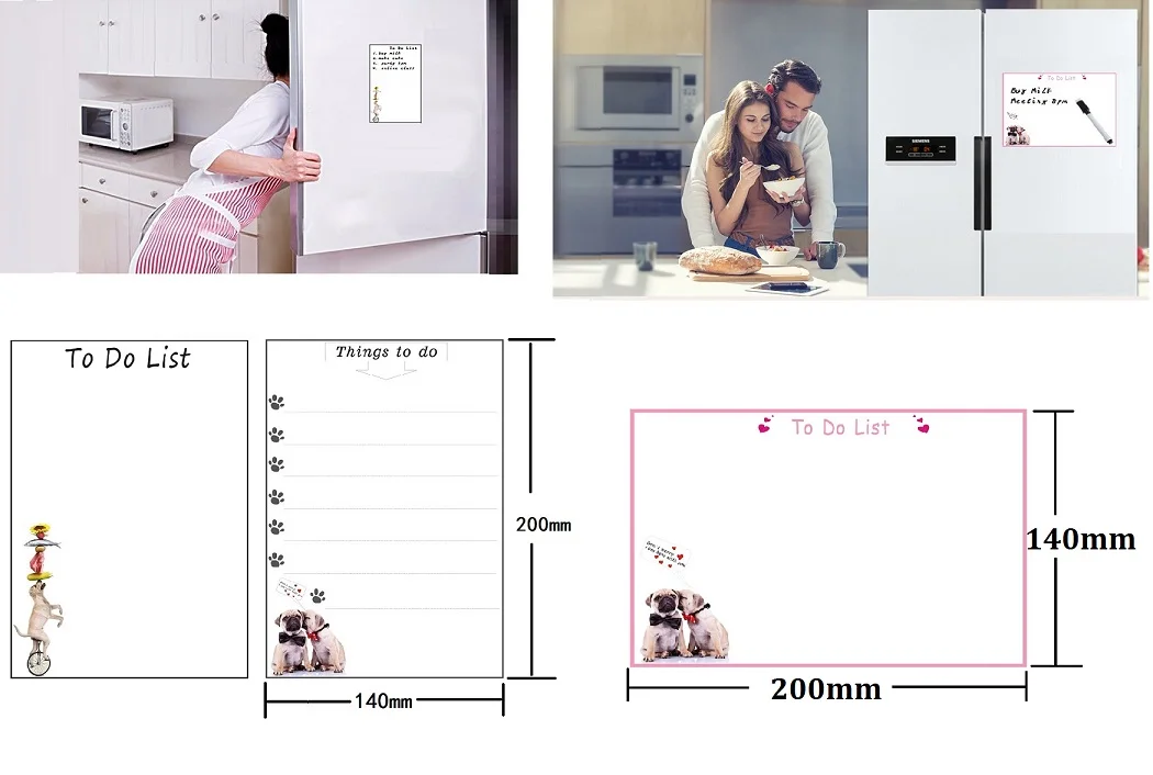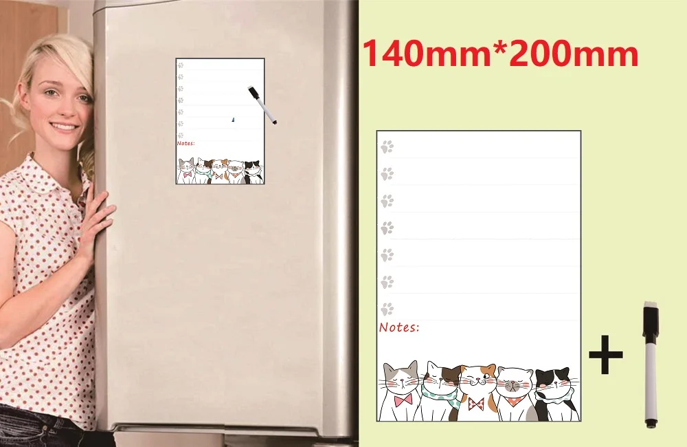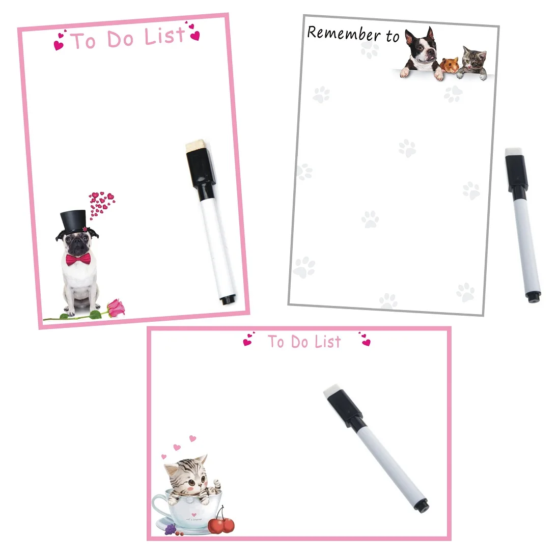 Магнитная доска для сухих салфеток, с напоминанием, блокнот для записей, магниты на холодильник, Мультяшные Домашние животные, собака, кошка, лист-планировщик, заметка, кухня, дом