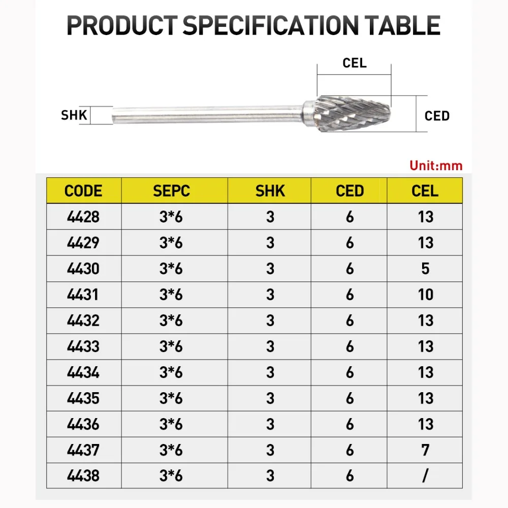 Фреза HUHAO с хвостовиком 18 дюйма, аксессуары для шлифовки, металлическая шлифовальная насадка dremel, электрическая Вольфрамовая карбидная фреза 3x6