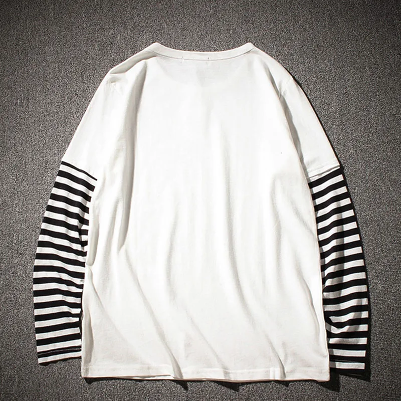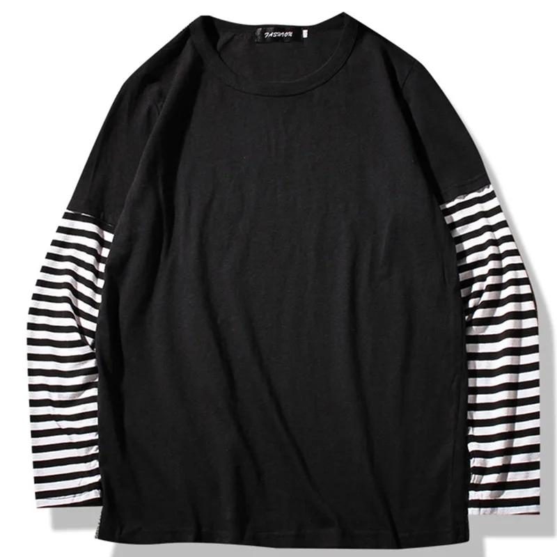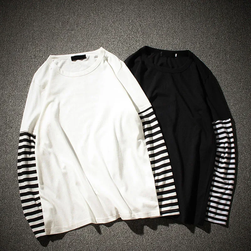 Футболка мужская с длинным рукавом, длинная рубашка в полоску, с кр...