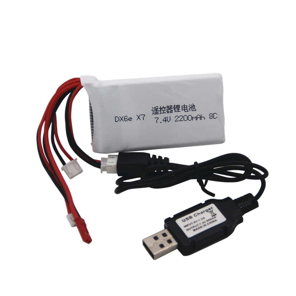 Литий-полимерный аккумулятор 2S, 7,4 В, 2200 мА ч, 8C, для радиоприемника RC3S, RC4GS, RC6GS, DX6e, DX6, для передатчика Taranis Q, X7 с зарядным устройством