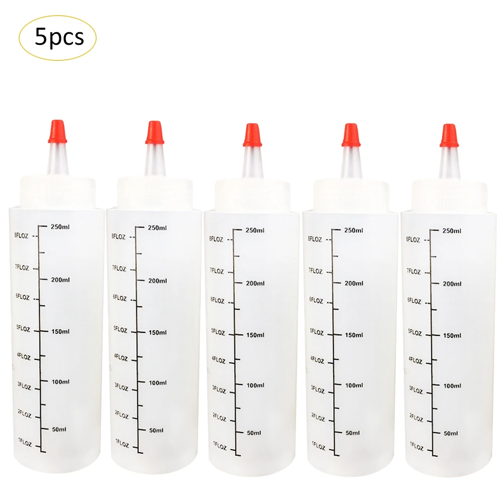 5 шт. 250 мл Пластик иглы носом бутылка со шкалой бутыль с герметичным Кепки соус Салат бутылки
