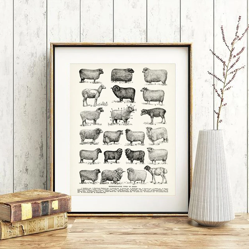 Порода овец, винтажный постер с принтами, фермерский дом, настенная живопись, виды овец, холст, живопись, дача, ранчо, сельское хозяйство, Декор, подарки для фермера