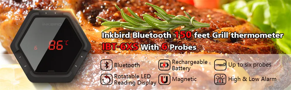Беспроводной термометр IBT 2X 4XS F001, кухонный прибор для измерения температуры, с таймером и Bluetooth, для барбекю, духовки, мяса, гриля