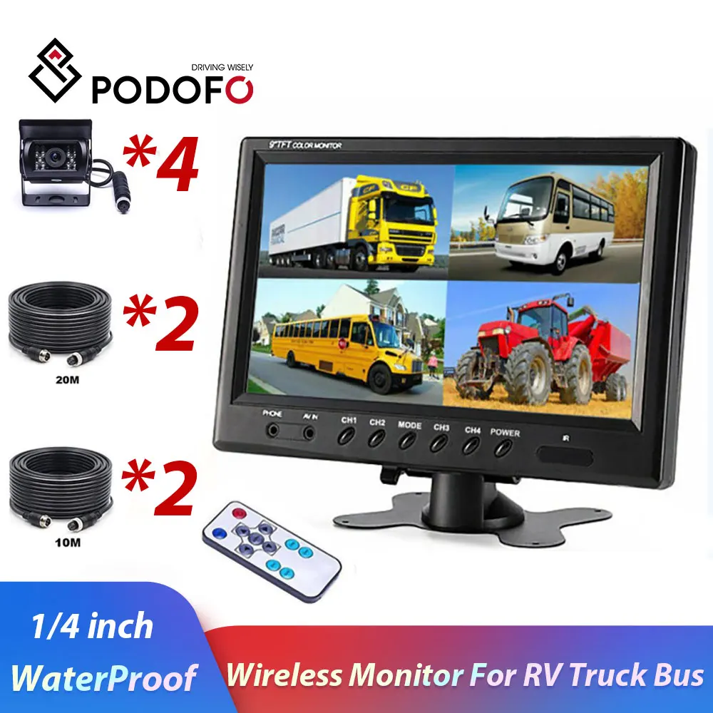 9-дюймовый ЖК-монитор Podofo для автомобилей, 4-канальный 4-контакт...