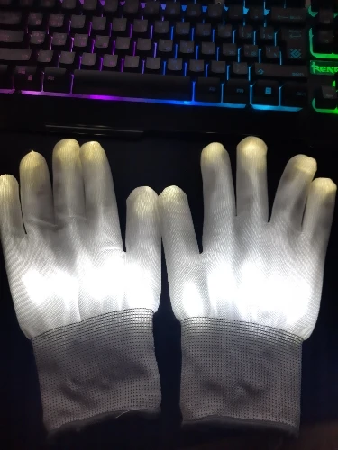 Классные перчатки!!! Доставка очень быстрая, спасибо за это продавцу!!!!! жалко что через неделю на одной из перчатке перестали светить 2 пальца.