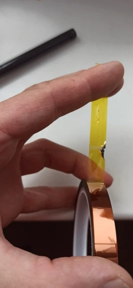Заказал термоскотч и фольгу. Дошло в западную Сибирь за пару недель. Проверил скотч паяльником с температурой жала 330°C. Испытание выдержал, только клей дымит, выгорает. Клеющие свойства действительно, как пишут, - не очень, но для моих целей подойдёт. Замерил толщину - 0,05мм. Фольга по толщине - также 0,05мм. Липнет хорошо. Продавца рекомендую.