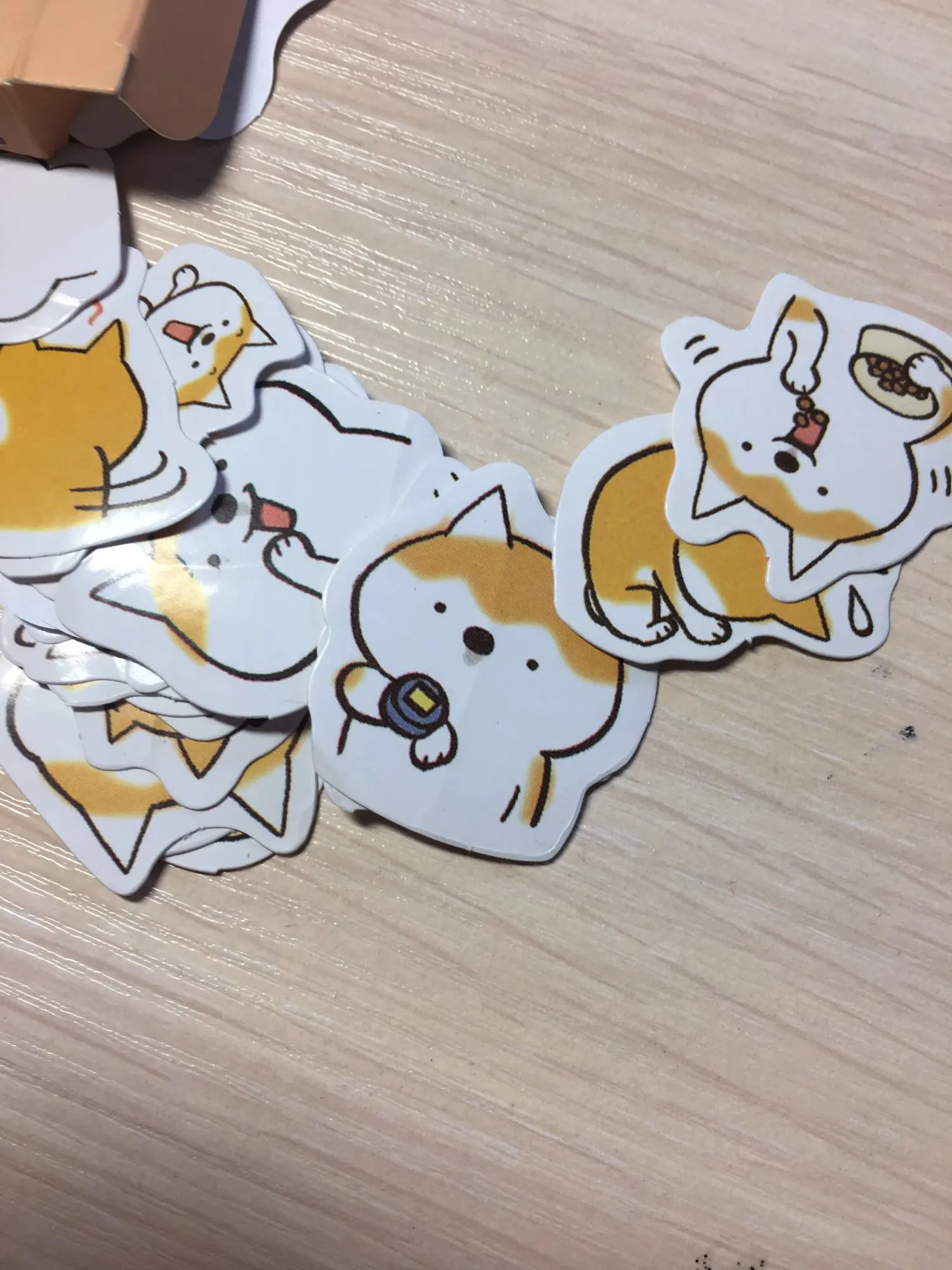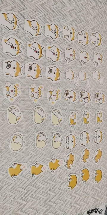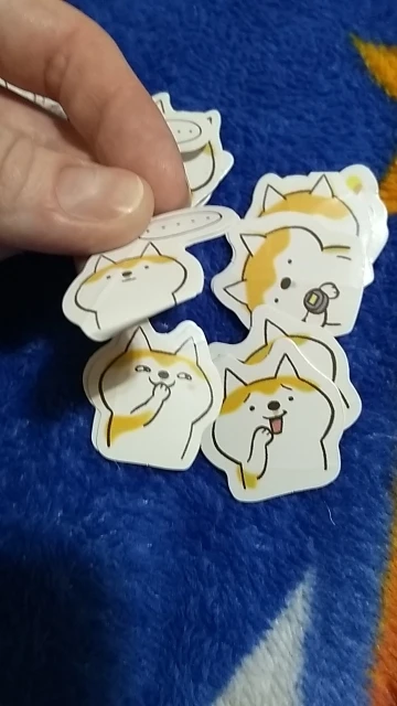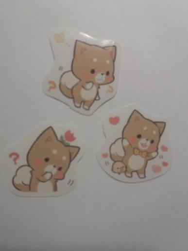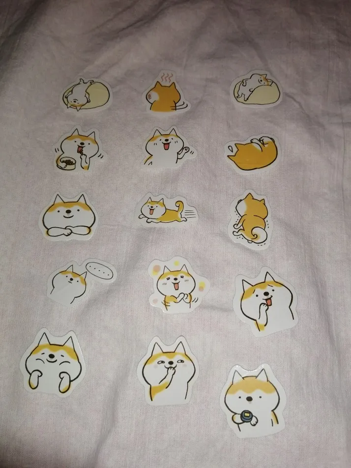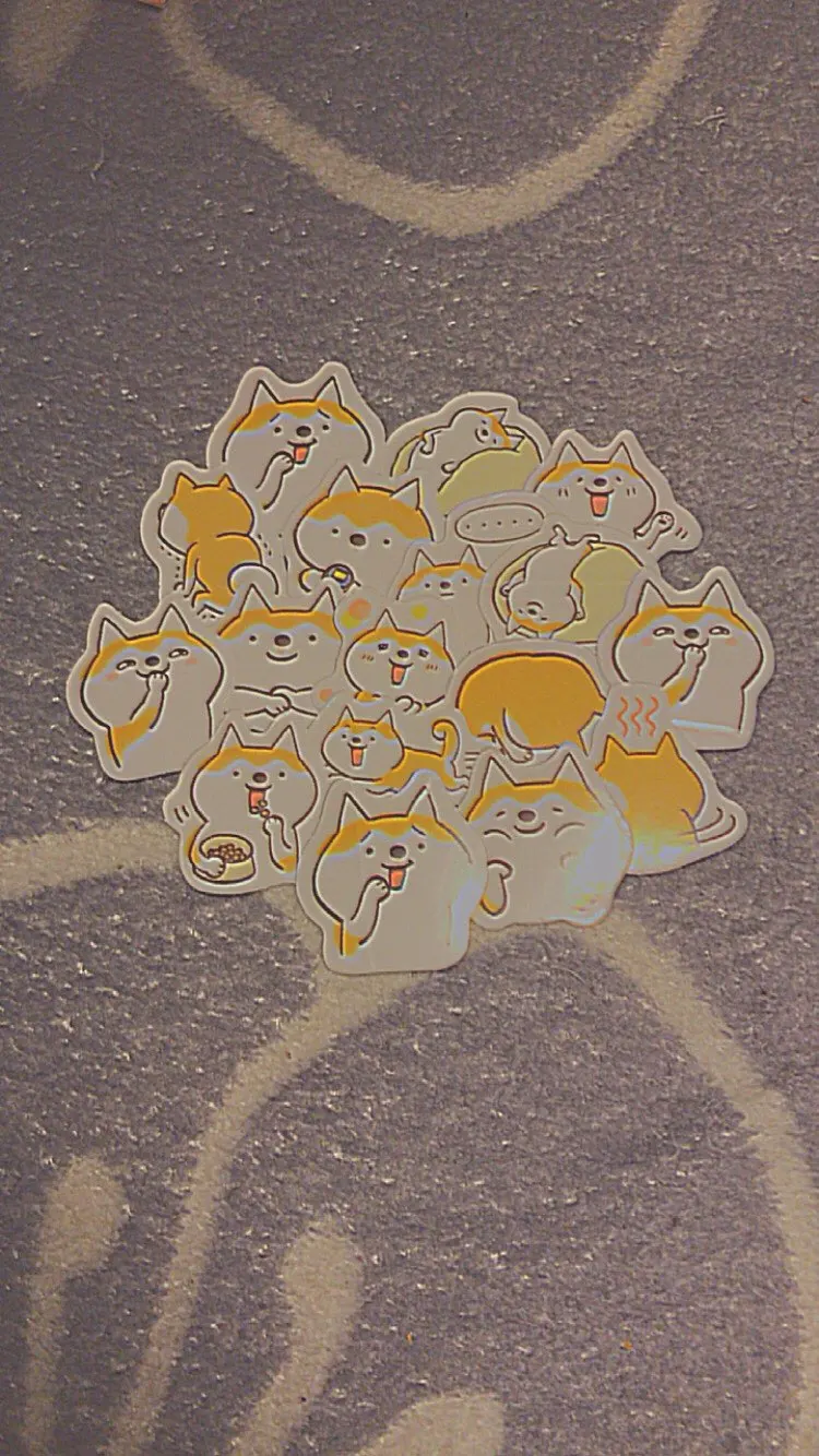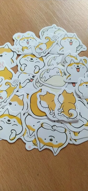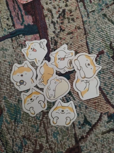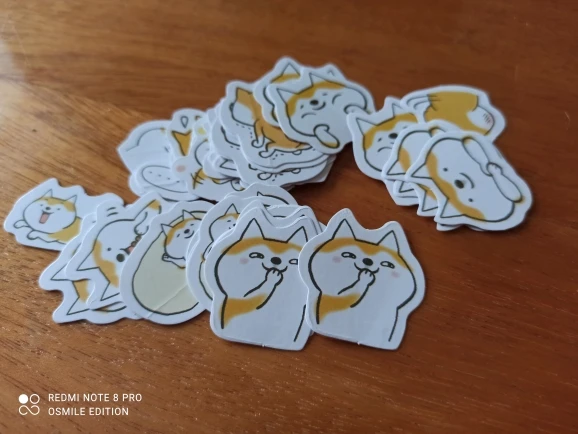 Интересные наклейки, размером чуть больше 2х ногтей большого пальца, думал они будут побольше) В упаковке их много, примерно 35-50, но некоторые были помяты целыми сериями, то есть одно лицо корги ровное, а если брать со знаком задумчивости, то мятые. видимо при производстве.