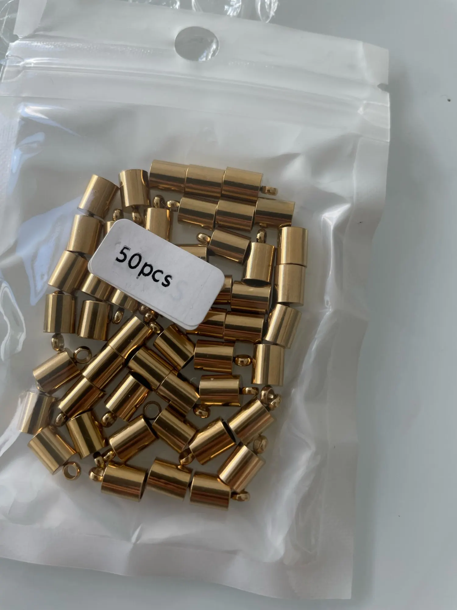 Концевые колпачки из нержавеющей стали, 50 шт., золотистые колпачки для кожаного шнура с кисточками, Концевики, коннекторы, фурнитура для творчества