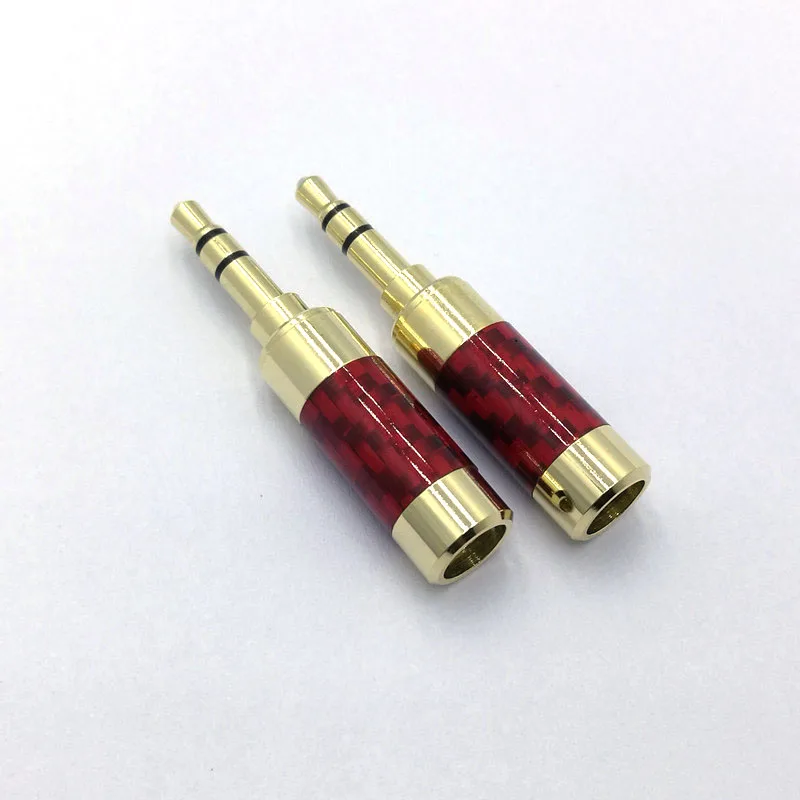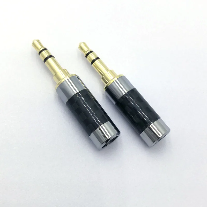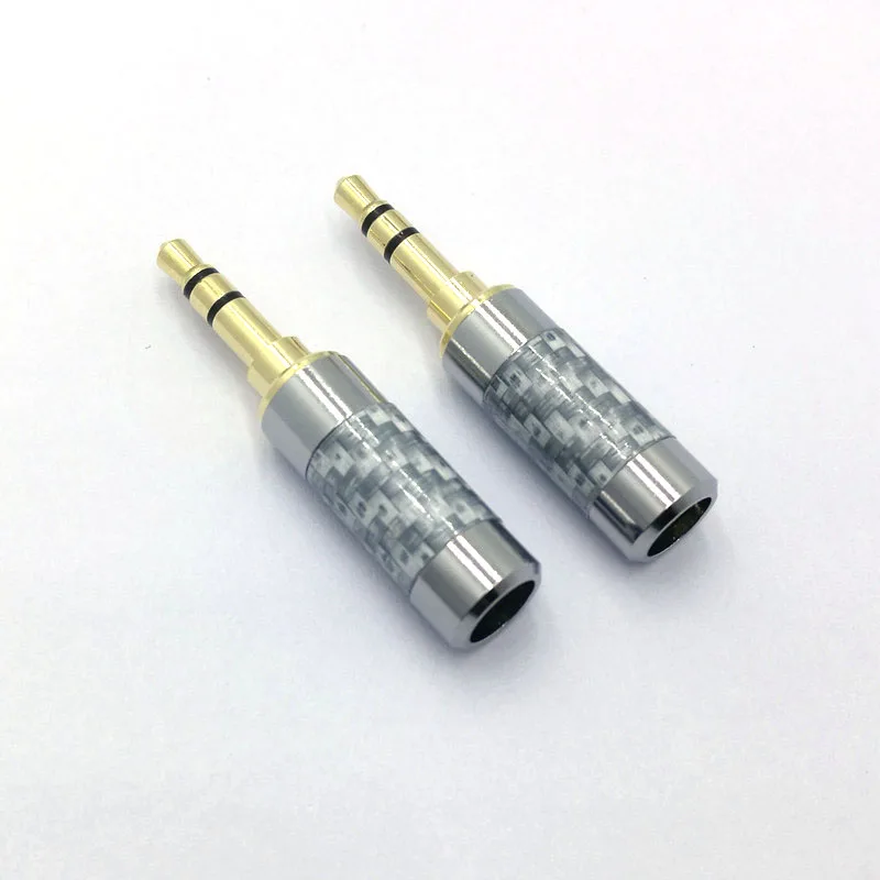 Адаптер из углеродного волокна, аудиоразъем 3,5 мм, 3-полюсный стерео штекер, позолоченный провод, паяный разъем для кабеля 6 мм