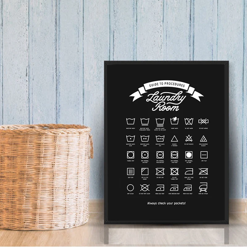 Декор для прачечной, символы стирки, знак, настенная Картина на холсте, руководство по стирке, Постер и печать на стене