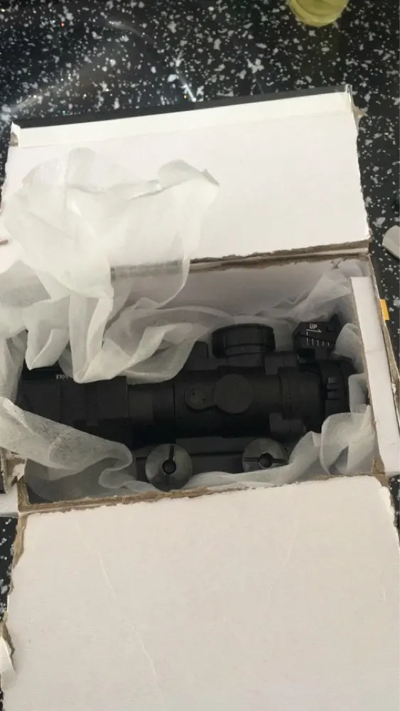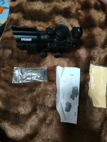 сидит без люфта, изображение четкое, на почте посылку уронили и она пробила упаковку, но прицел цел, увесист, в комплекте тряпочка для линзы, батарейки нет.