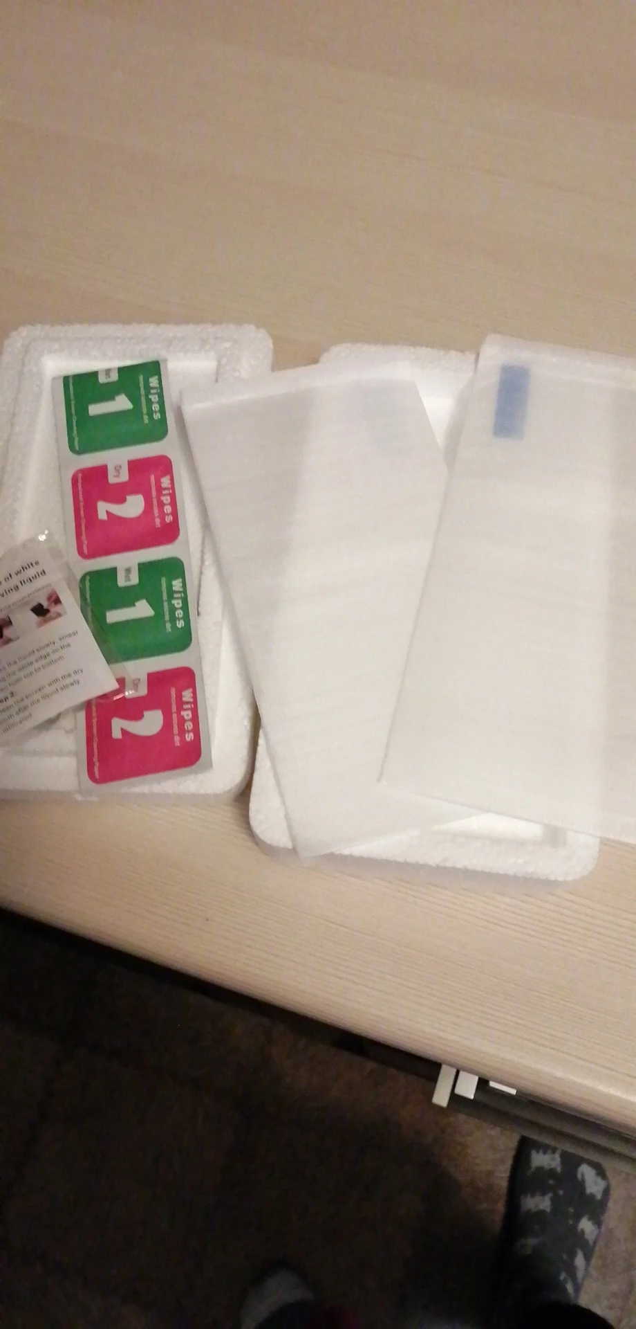 Стекла хорошие, пришли целые и быстро, около 2х недель. В комплекте салфетки и жидкость для края.