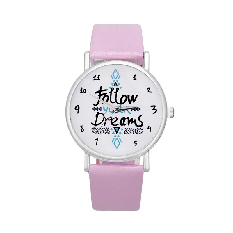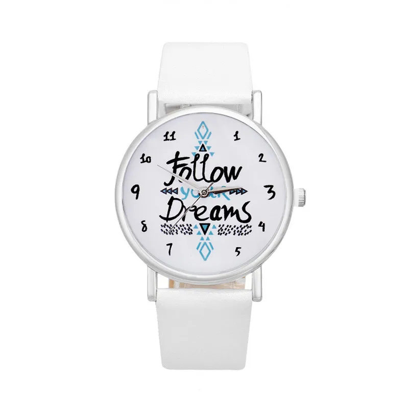 Часы наручные женские кварцевые с кожаным ремешком, модные креативные Роскошные повседневные, с надписью Follow Dreams, # c