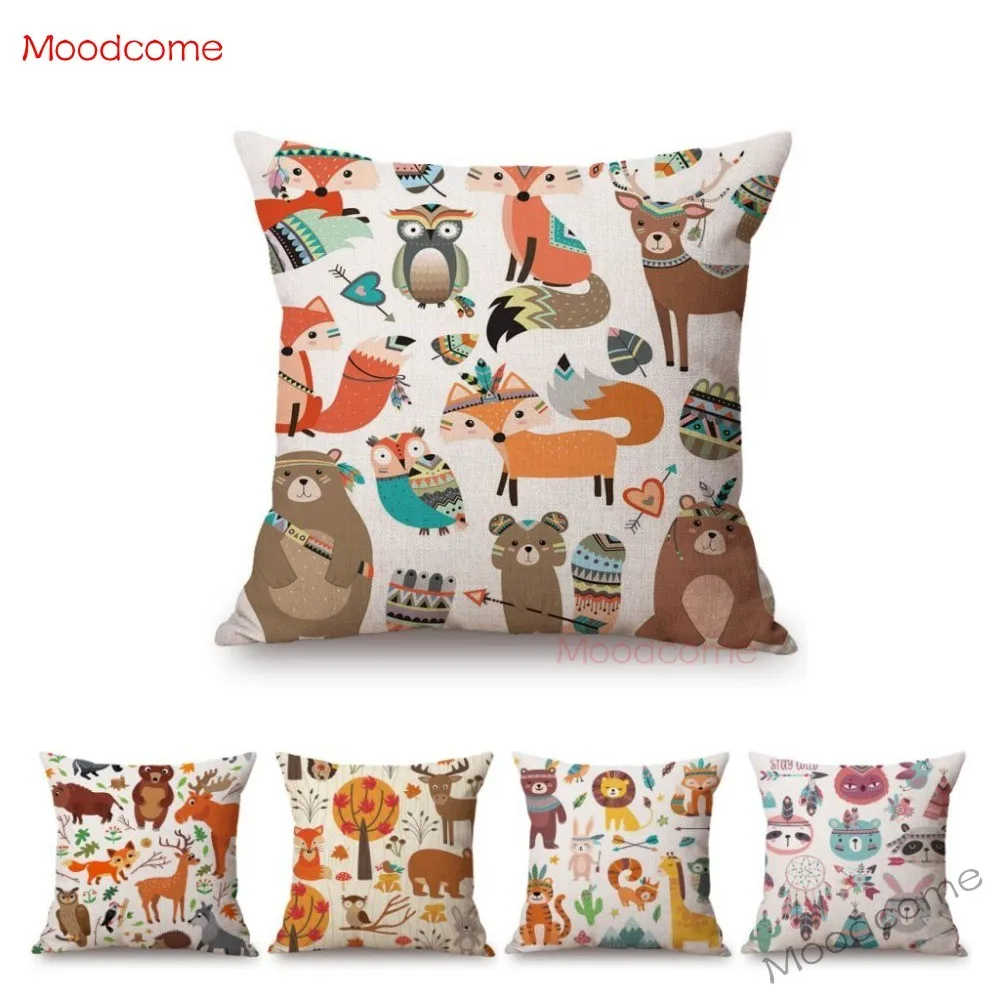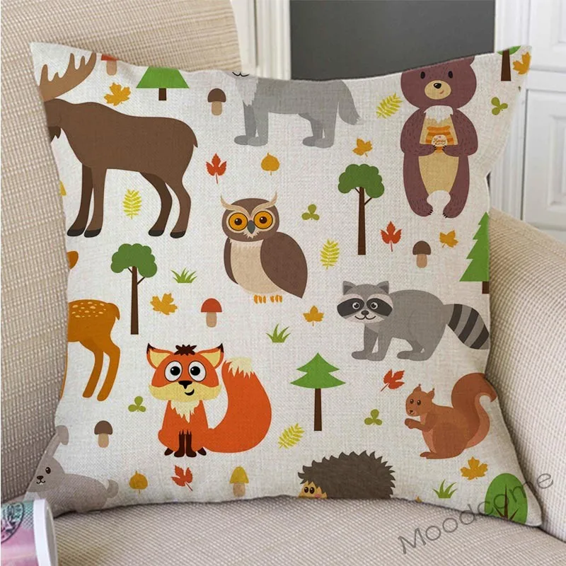 Чехол для детской диванной подушки, с изображением лесных животных,...