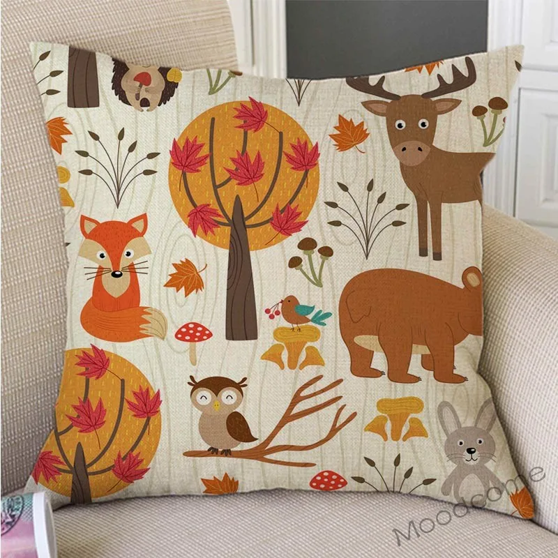 Симпатичный чехол для диванной подушки с изображением леса животног...