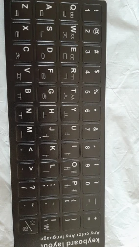 Хорошо работает! Я учу корейский язык и учюсь печатать на компьютерной клавиатуре с наклейками очень полезно. Ключи хорошо покрыты на моем macbook pro. Доставка была относительно быстрой, и товар хорош по своей цене. Наклейки толще, чем вы думаете, может быть толщина миллиметра? Или, возможно, меньше... Все еще не слишком толстый, но толще, чем я думал. Никаких жалоб!