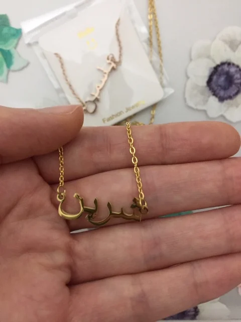 Ислам ювелирные изделия персонализированный шрифт кулон ожерелья из нержавеющей стали Золотая цепочка на заказ арабское имя ожерелье женщины подарок подружки невесты