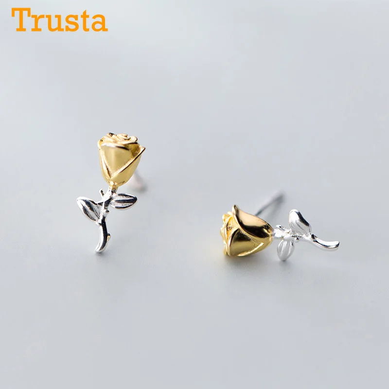 Серьги-гвоздики из серебра 100% пробы с цветком розы