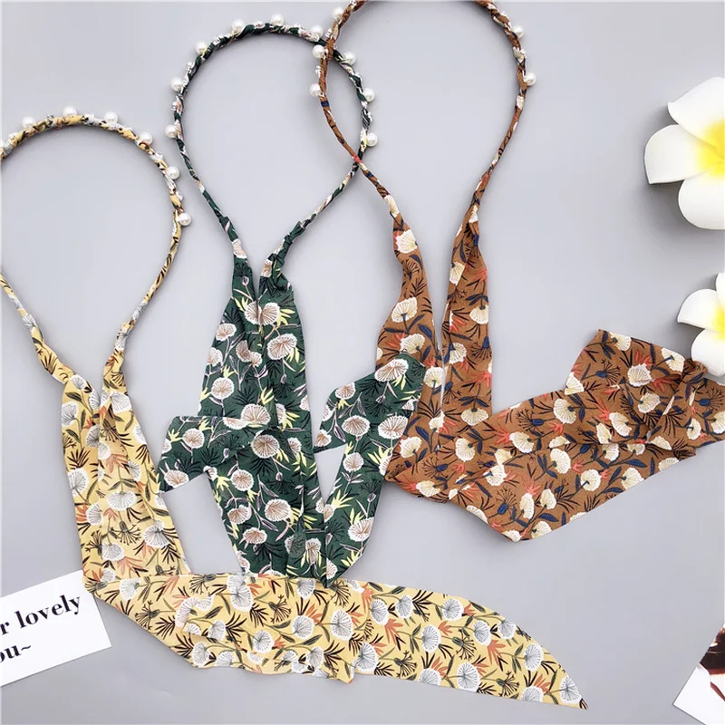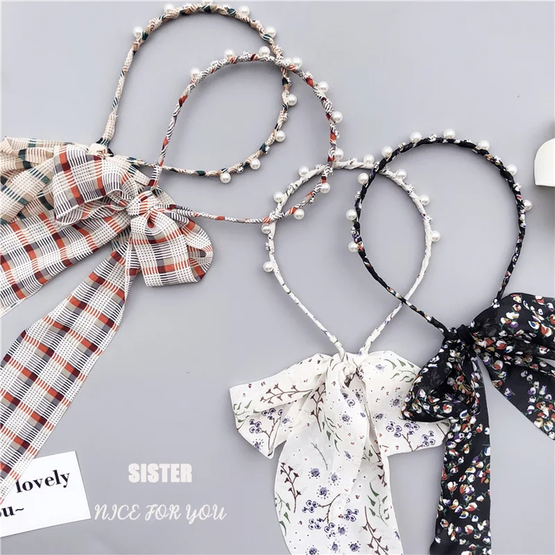 Новые модные женские длинные ободки с жемчужинами, винтажные резинки для волос, мягкие ободки для волос в Корейском стиле, аксессуары для волос для женщин и девочек