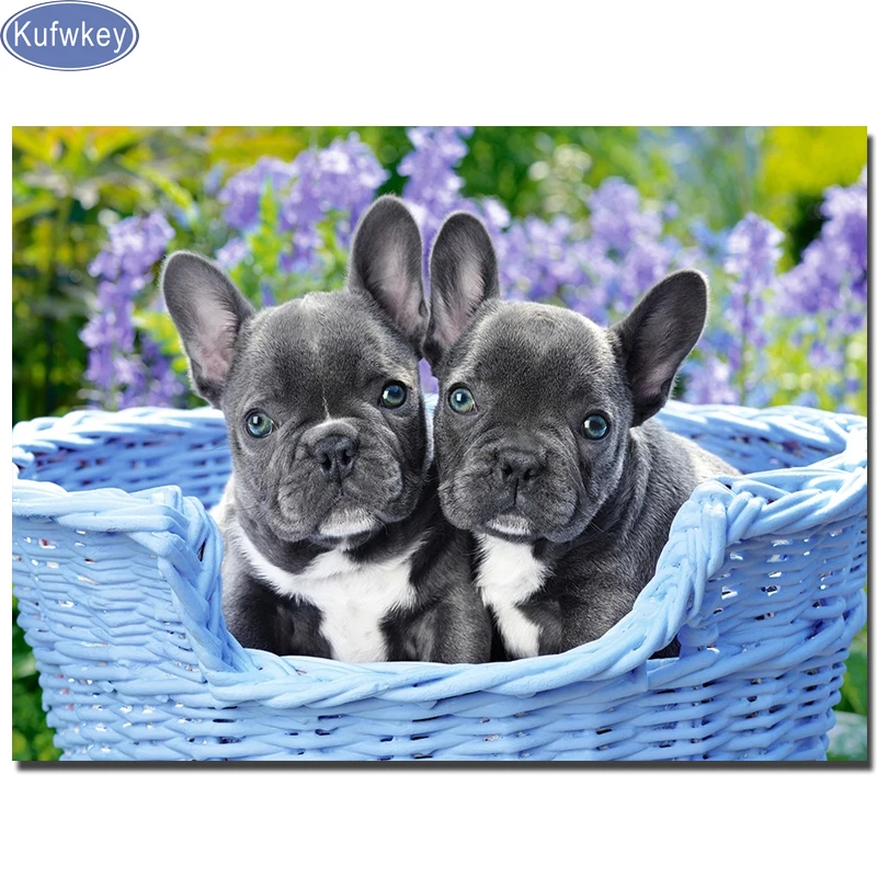 5d diy Алмазная картина полностью Французский бульдог щенков, набор крестиков кристальная Алмазная вышивка мозаичный узор Собака Животное Искусство