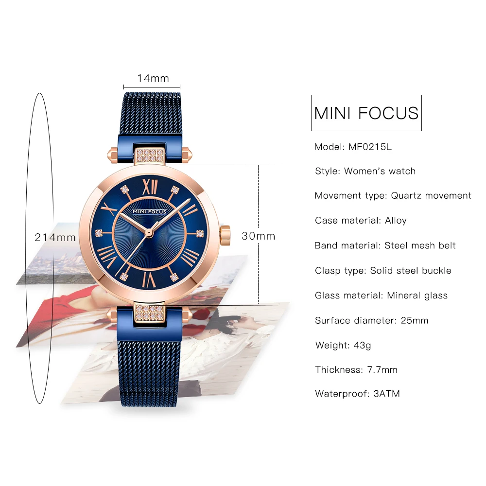 Мини фокус Ladys Роскошные Брендовые женские часы водонепроницаемые...